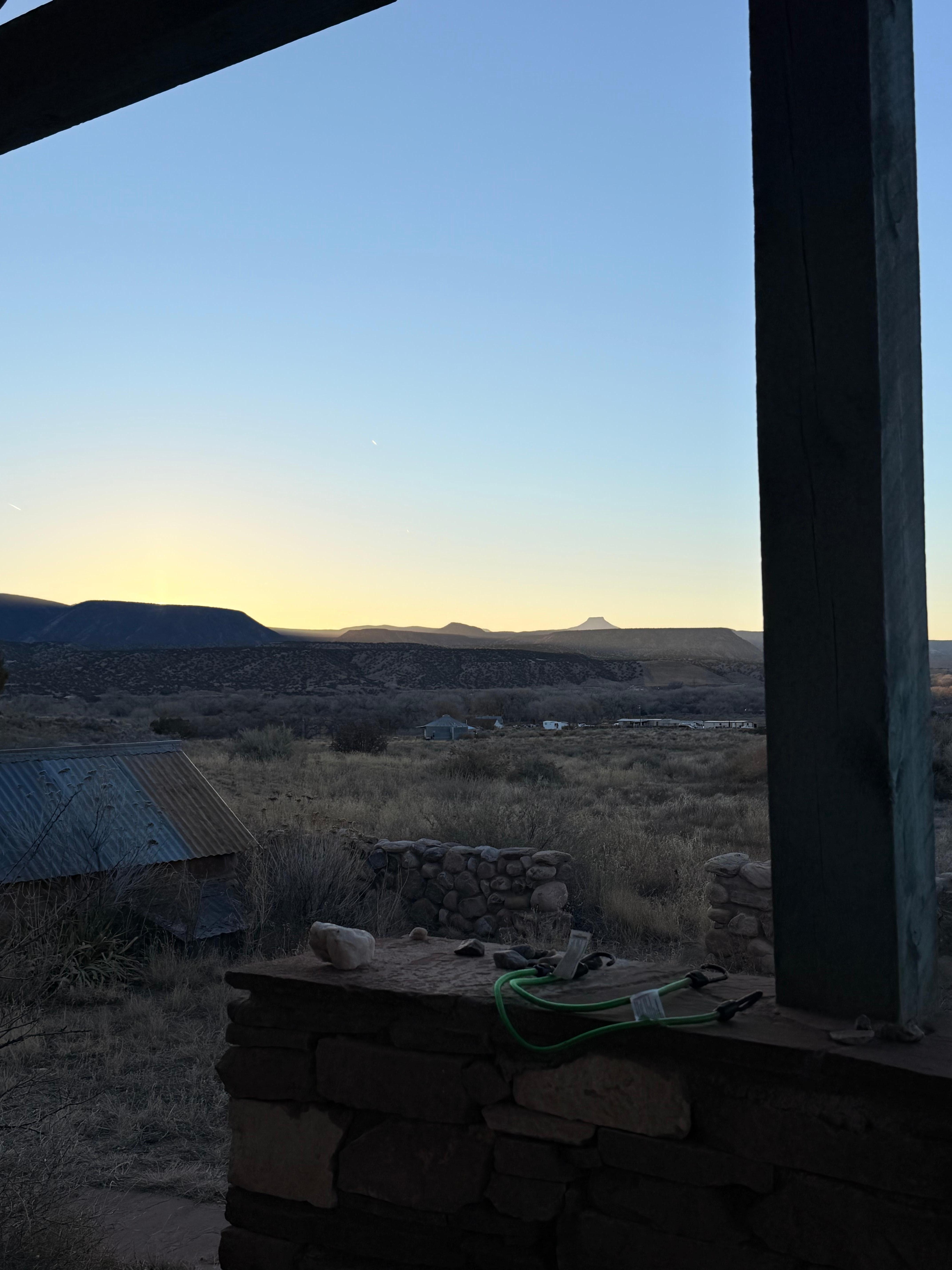 The whole place is yours. La Biblioteca shares 10+ acres with the main house, Casa Tacoya. Two propane stoves heat this perfect little house, looking out towards Pedernal!