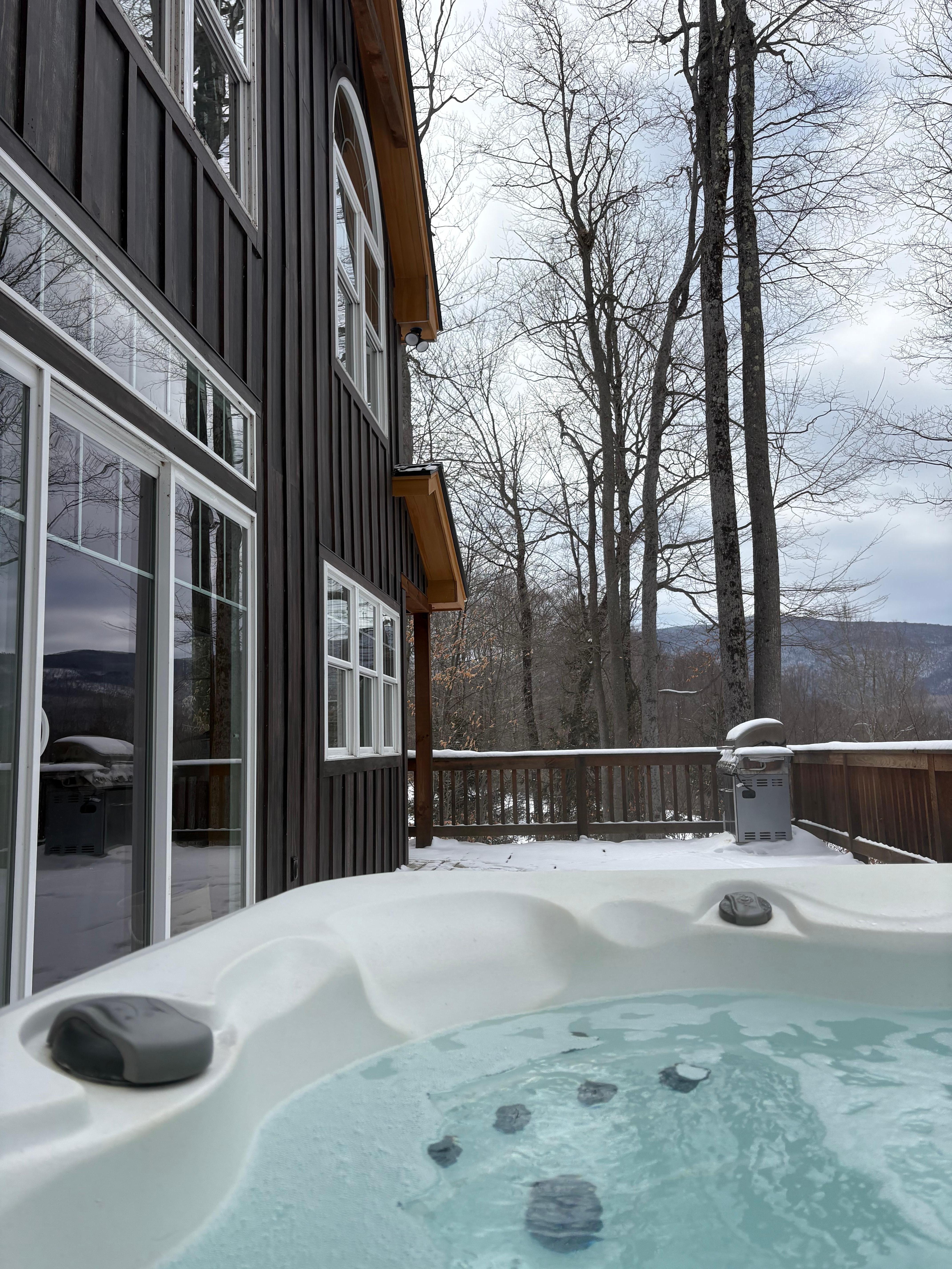Convenient to downtown Manchester's outlet stores and restaurants,golf (equinox golf course 3 miles away) hiking, kayaking and fishing (battenkill river)skiing-Stratton or Bromley, hot tub on full deck with close-up views of Mount Equinox, these mountain views will either make you weep or sing for joy, dines 8 easy, master on main (king bed). This home was intended to bring INSIDE the natural beauty you see OUTSIDE. Complete with vaulted living area and exposed timber beams throughout!
