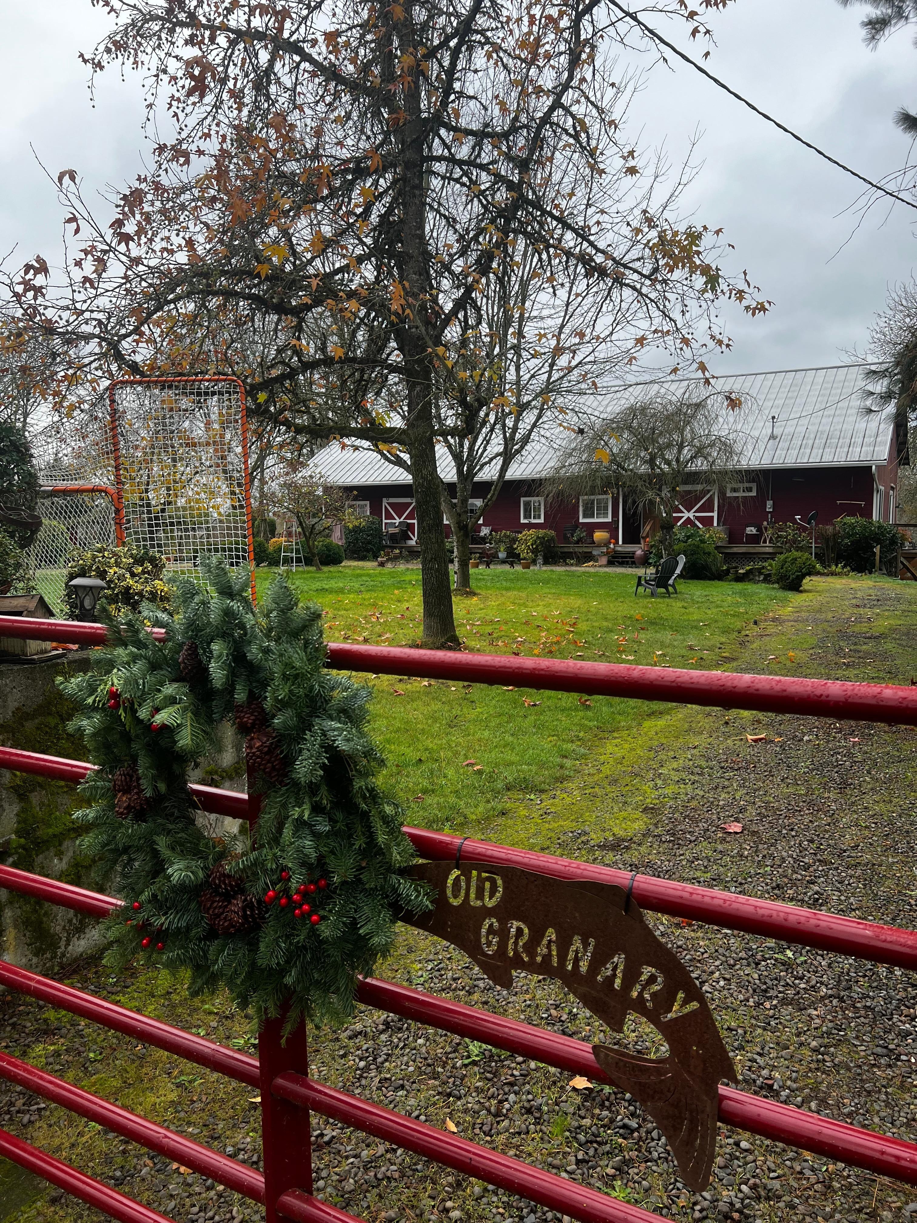We are located in Peoria, Oregon on the Willamette River. Our spacious (600sq ft) quarters with it's own entrance is privately located on the North end of our 100 year old granary residence. We offer beautiful grounds to stroll, the river to enjoy, and the peacefulness of country living.