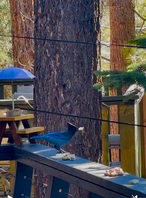 The instant that you make your way up the stairs from the driveway and turn around, you will immediately understand the steepness of the driveway. You'll find yourself transported to a serene mountain cabin. Take a moment or hour to just sit in the chairs on the far side of the deck and enjoy the beautiful view of the ski slopes to your left. Once ready, the rustic wood grain deck invites you to enjoy the cabin inside.