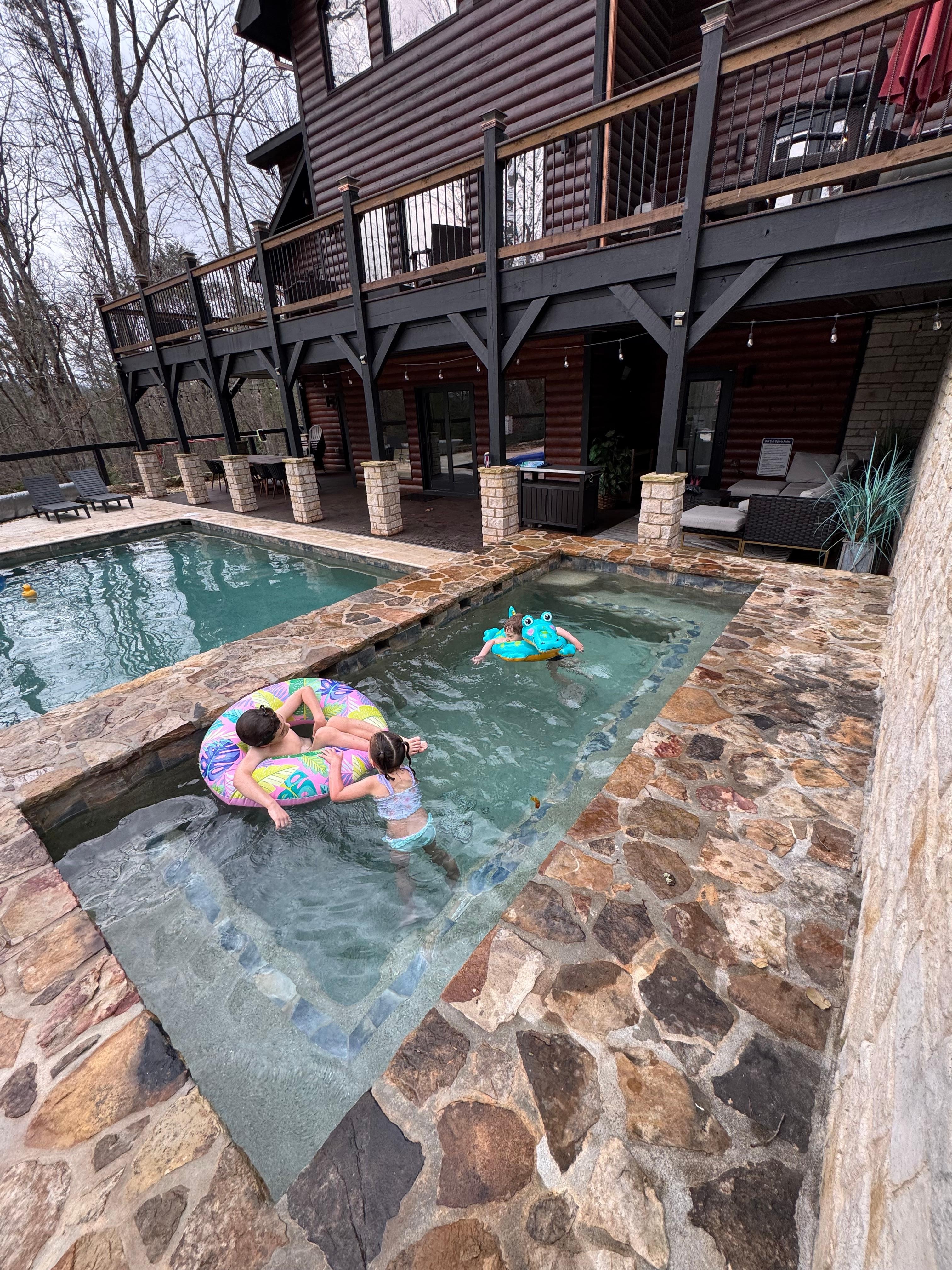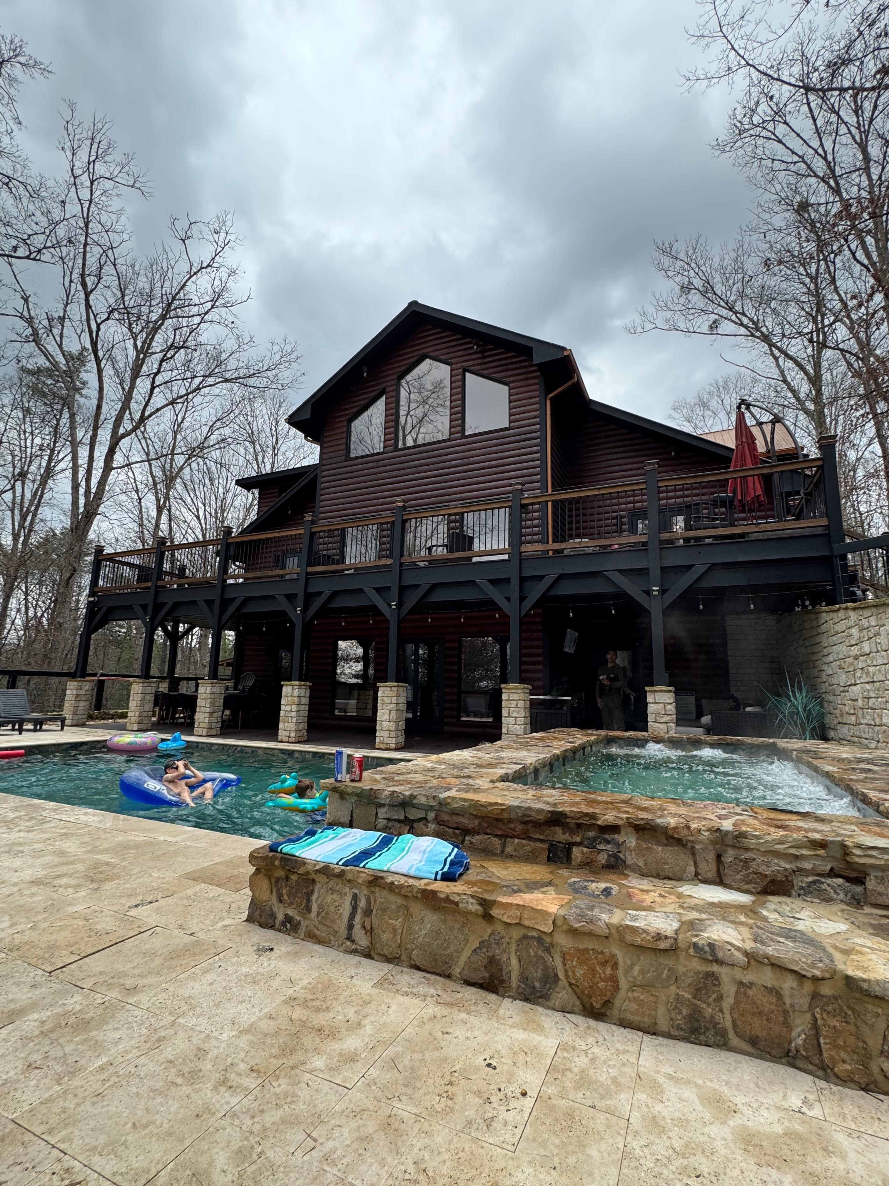 The “cabin” is amazing with plenty of room for everyone. The kids loved the pool and we all enjoyed the huge hot tub. The area was private and quiet and the woods were so beautiful. The kitchen was very well equipped and there was space for everyone to eat together. We found wonderful hikes in the area as well as white water rafting. We all went home feeling refreshed after this wonderful vacation. Thanks Jodi for being so helpful.