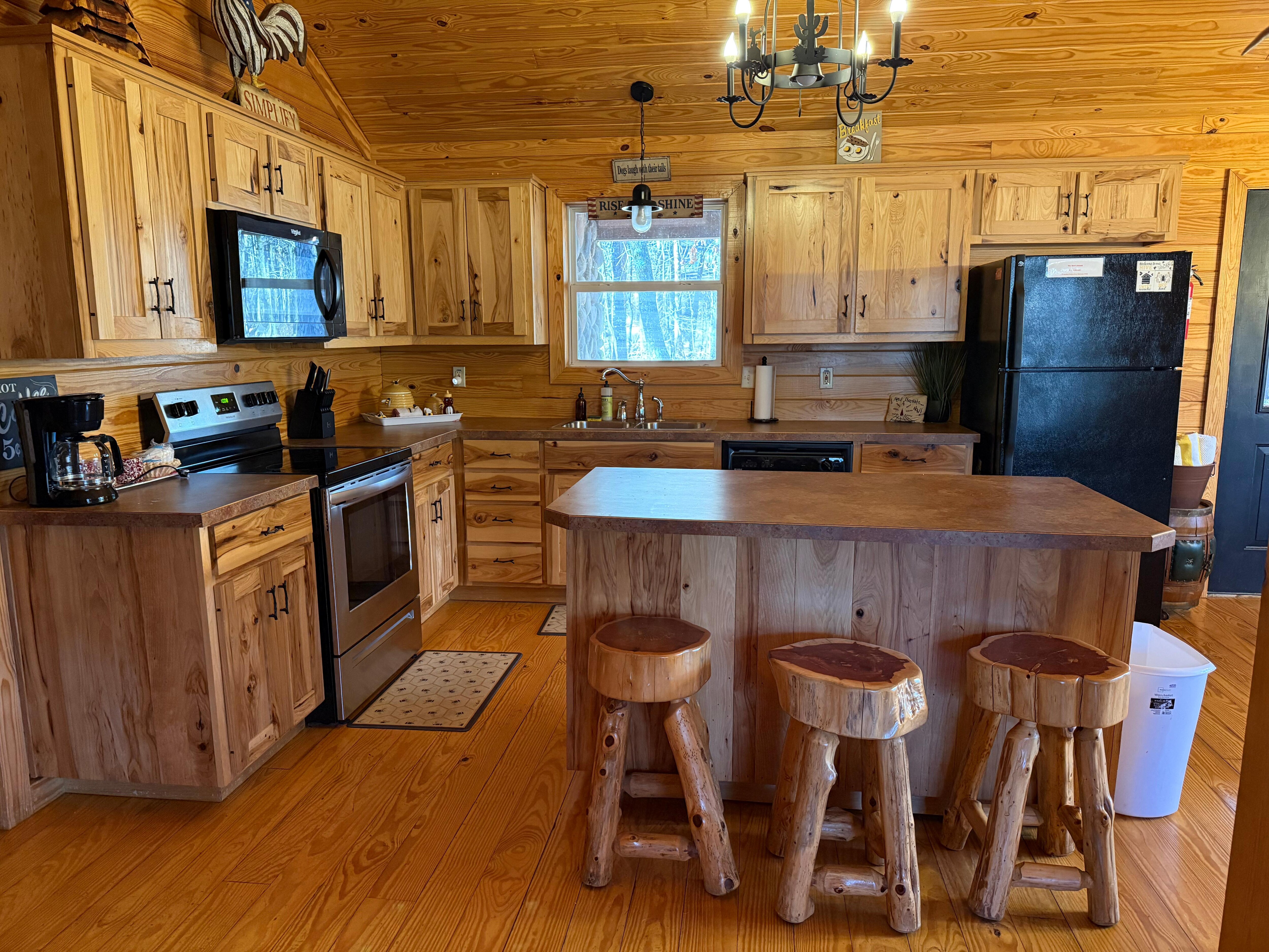 The Bees Knees was great! The cabin had so much room and the kitchen was very well equipped. Space outside was so nice with the firepit. Great location. Seems you’re out in the woods, yet you can walk to the several attraction and are on a short drive to the state park. Host was quick to answer any questions we had. We will look to book this cabin on our return trip to Hochatown. Loved it!