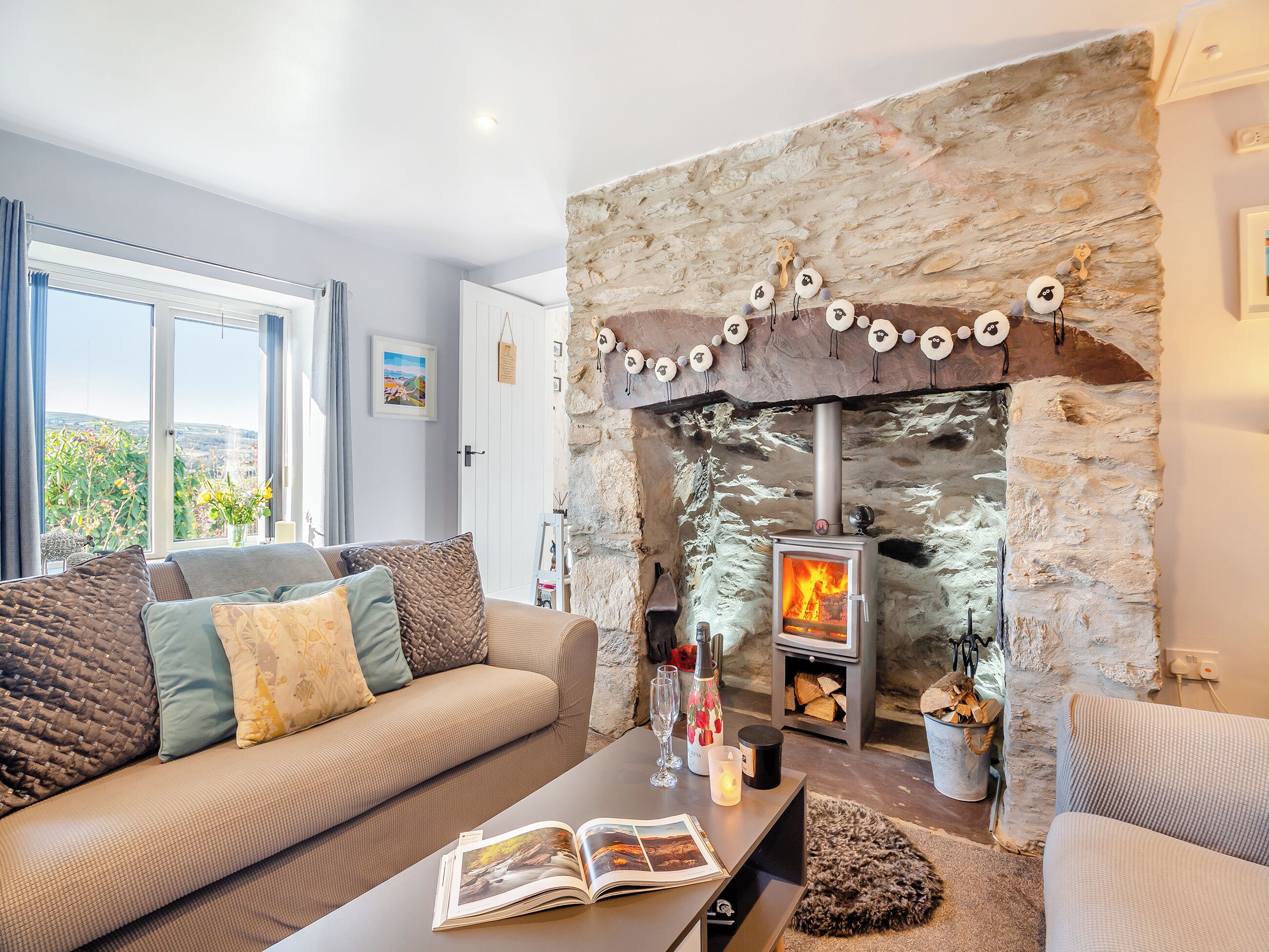 Living room: Smart TV, Woodburner