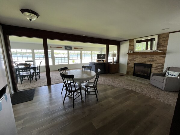 During the summer, enjoy swimming right off the shore or dock, or rent/bring your own boat! The lakeside yard is large and flat for all kinds of summer fun. In the winter, enjoy ice skating or ice fishing, then warm up by the cozy gas fireplace. In the fall, the tree-lined street makes for the perfect walk or bike ride on the Spirit Trail, a 7 mile path that goes around the lake. No matter the season, there is always something to do here!