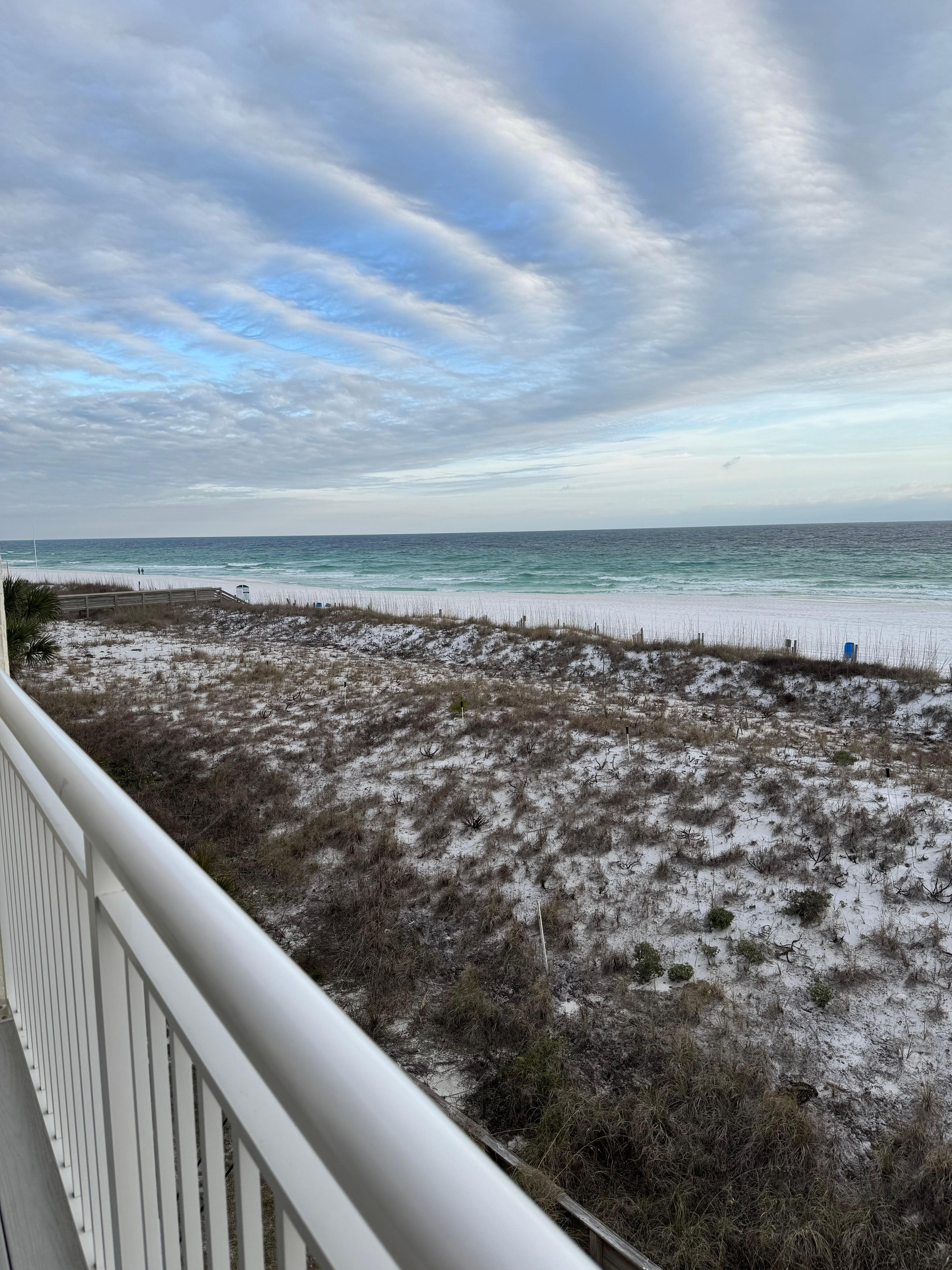 Located directly on the beach with fantastic views of our beautiful white sand beach and emerald green waters of the Gulf of Mexico. Enjoy the most beautiful sunrises and sunsets from your own private balcony.