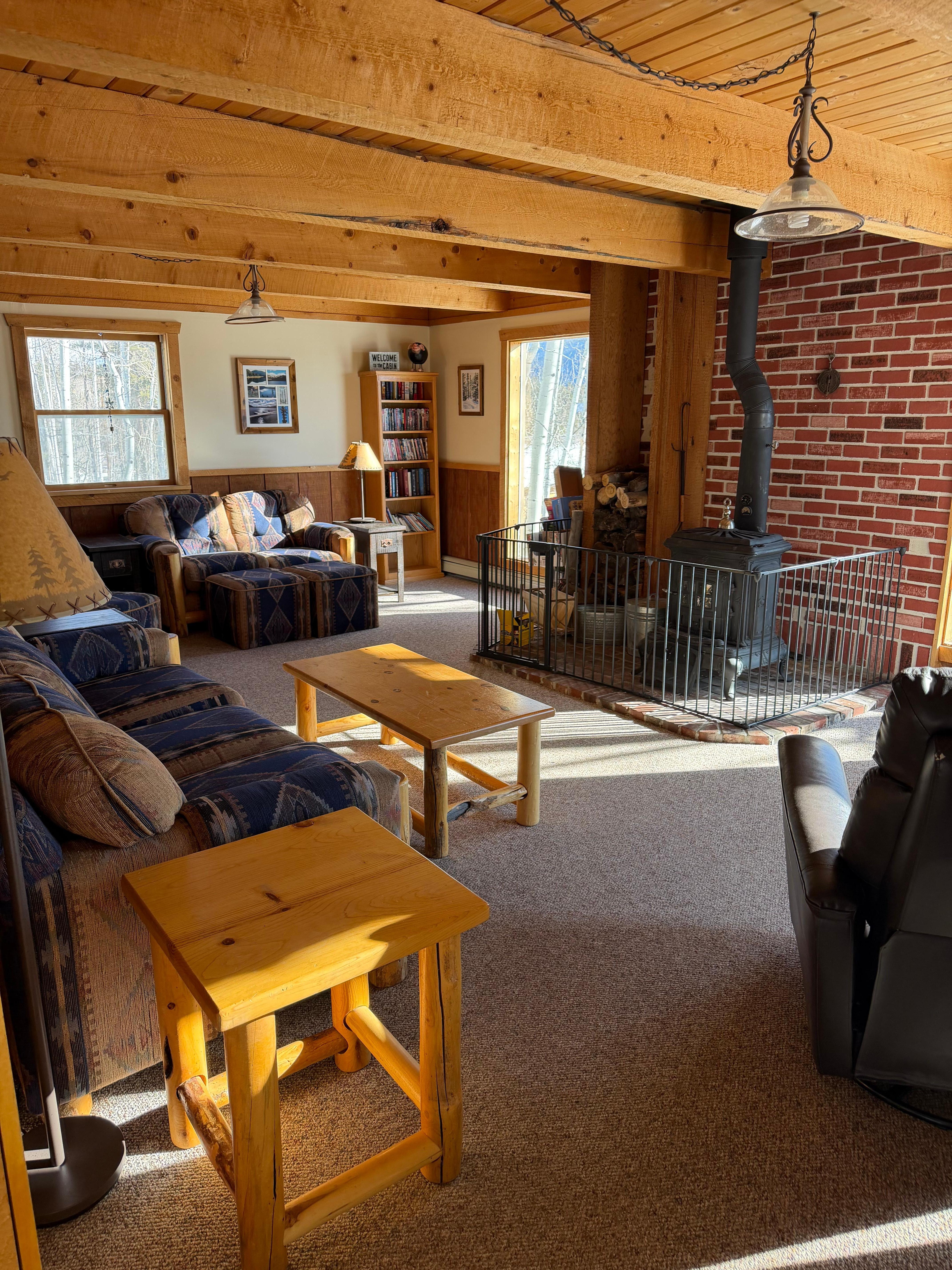 Enjoy the views of beautiful Shadow Mountain Lake and Mountains from the sitting area off the dining room. This is the most spectacular area to enjoy a morning coffee or hot chocolate as the sun is rising over the mountains. In the evenings cozy up to the wood burning stove in the living room. In the summer enjoy a quiet evening on the patio or sitting around the fire pit.