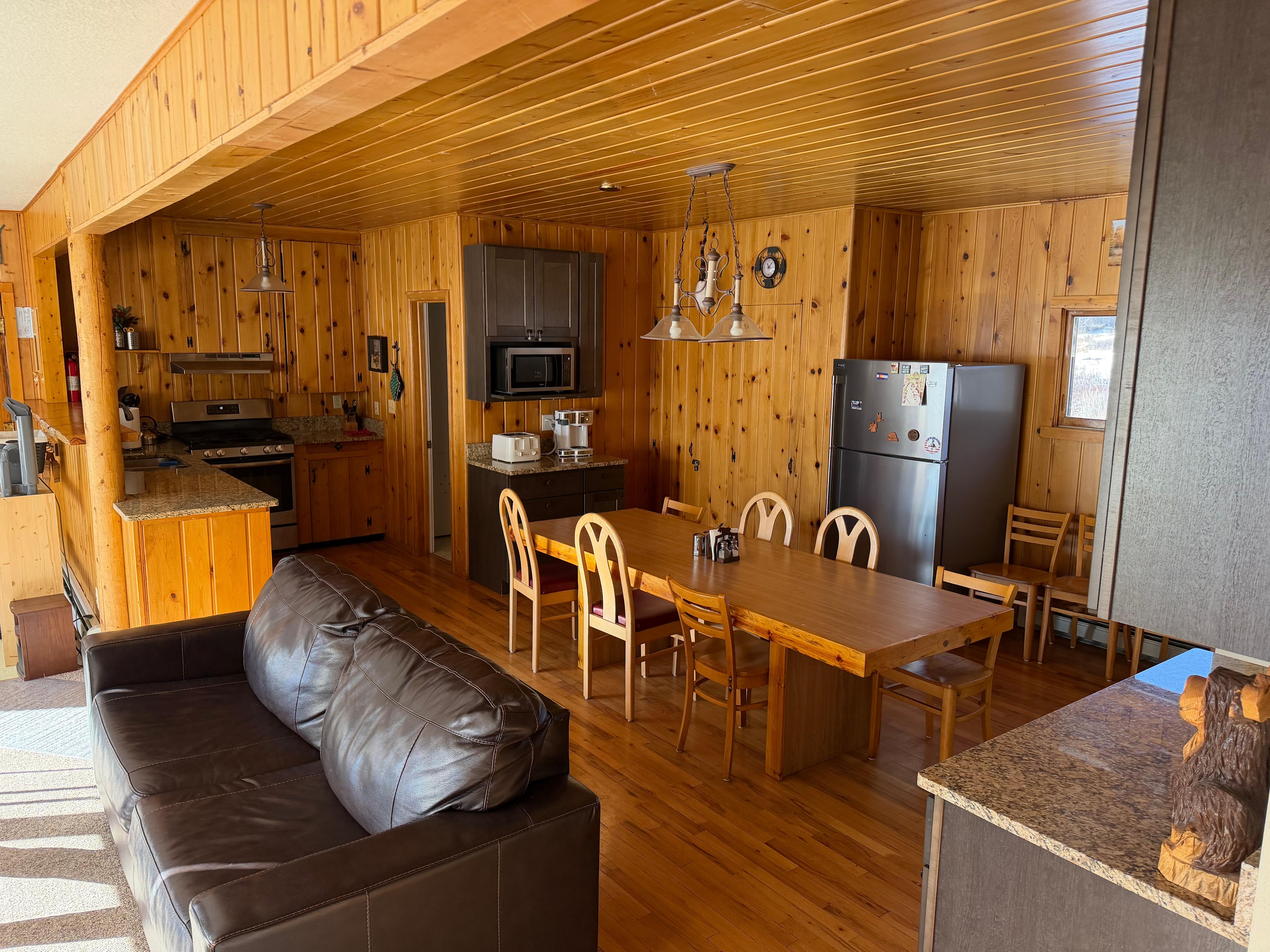The Cabin has been upgraded with granite countertops and all appliances are stainless steel including a beverage fridge to ensure you have plenty of fridge room. We have updated some furniture with a leather couch and chairs in the viewing area, leather rocker and dressers in all the bedrooms.