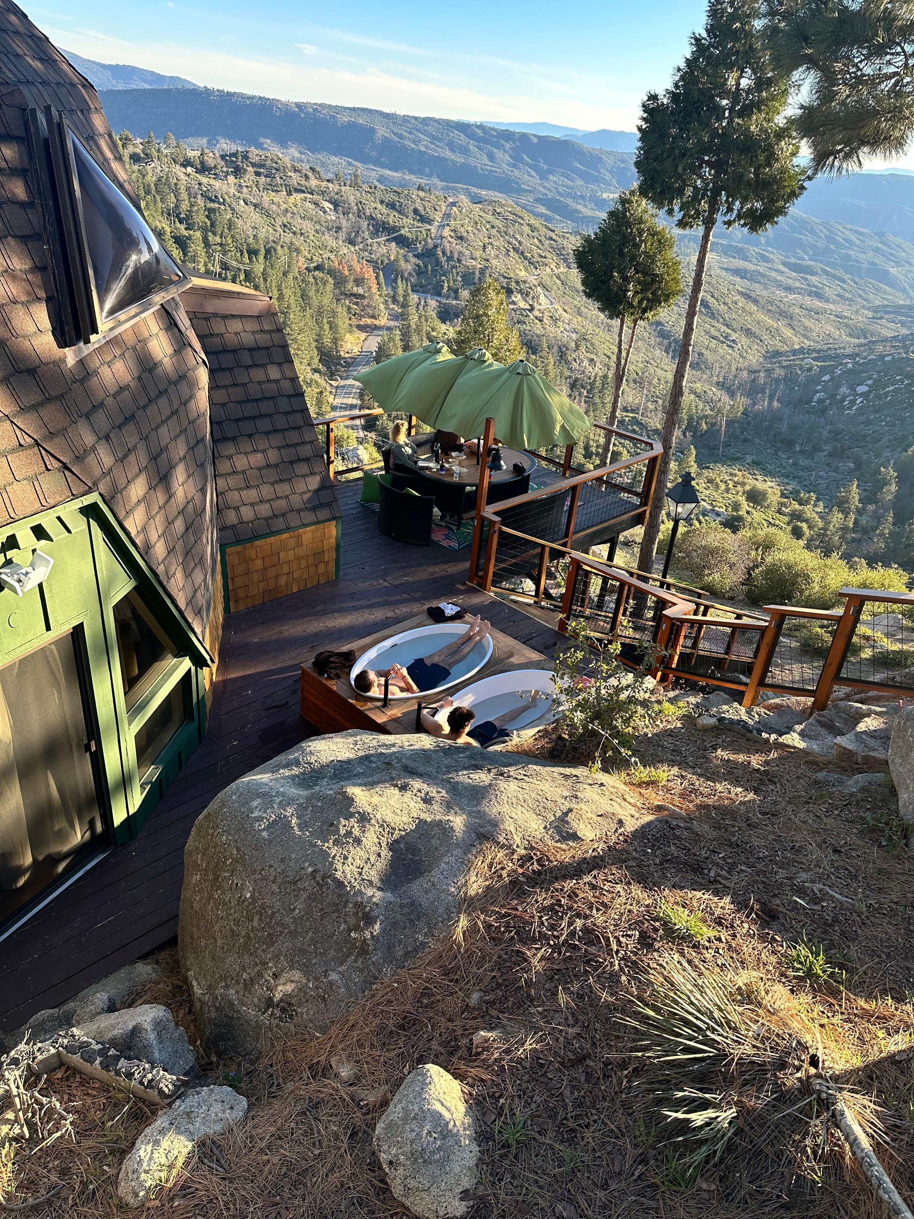 Unlike many homes in Idyllwild that are nestled deep in the forest, the Dramatic Geodesic Dome sits on the edge of Crestview Drive, offering sweeping views of the valley and even the ocean on the clearest days. Newly remodeled and now featuring AC and heat, the Dome is set on over 1.5 acres and includes three cozy fireplaces, a 26-foot vaulted ceiling in the living room, and a hot tub ideal for enjoying sunset views. The property backs up to a stunning 40-foot rock formation, with Native American acorn grinding bowls carved into the top—right where the views are best. Watch deer climb the hillside, dine indoors or out, and stargaze under crystal-clear mountain skies. Game Room & Sauna: The game room also serves as a 5th bedroom. For reservations made after July 1st, it’s included automatically. If your stay was booked before July 1st and you’d like access, please request it ahead of time. (Fees may apply to adding the Game room)