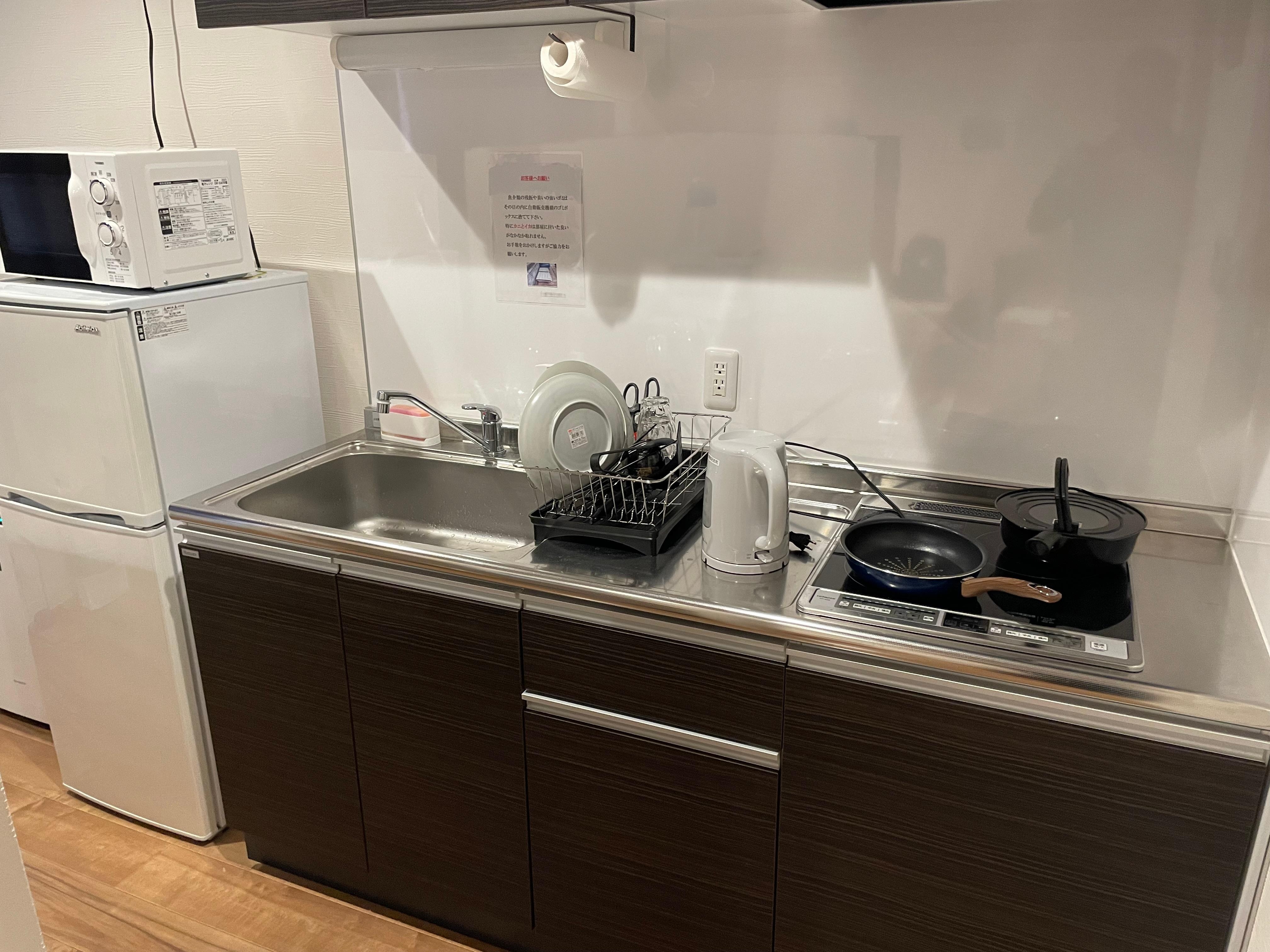 A clean, efficient unit, much like a small apartment. Has a stove top, microwave and small kitchen to prepare simple meals or heat up things. About a 10min walk to the train station and a short wall to a bus stop and family mart. It is a walk up so you will need to climb stairs to your unit. The bathroom is like new and the bed is comfortable.
