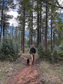 This house had plenty of room for us with our dog and our mountain bikes. So many special touches and supplies and the hot tub and fire pit out back were great! The bed and furniture were comfortable and the deck out front with a safety mesh and gate were so nice for our dog to hang out in the sun while we ate lunch. There are miles of hiking and biking trails in all directions. The hosts for this home really put a lot into making this a great stay. There was even a spare dog bed that our dog used on the deck. The neighborhood was sooo quiet we slept great. The neighbors across the way were very nice. The kitchen had plenty of utensils and pots and pans for making meals. We will definitely visit again and stay in this house! Thank you to the Serna's for sharing such a great home!