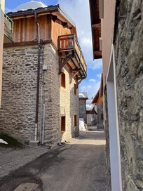Merci pour une maison fantastique! Tout était bien et nous avons passé un merveilleux séjour.We really enjoyed this unique chalet. It was charming and unusual, located in a quiet, small hamlet with other beautiful stone homes, narrow alleys and loads of character. Just for clarification, there are 6 bedrooms, one of which also has a loft with an additional (full?) bed, so 6 queen beds and 1 full in total. All were comfortable and scrupulously clean. Everything was in working order and we were given free access to whatever was needed. There are 5 flights of stairs in total and the living room is on the top flight, so it is best to be somewhat fit. The hosts are nice and speak French. My French is passable (not great), and they were patient. I would recommend speaking French however, not English. The skiing was marvelous and Trois Vallée is incredible. The bus comes hourly although a car to drive to the very close lifts (5 minutes drive, many choices) was a bonus for our group. I hope to rent this delightful home again for another ski adventure.