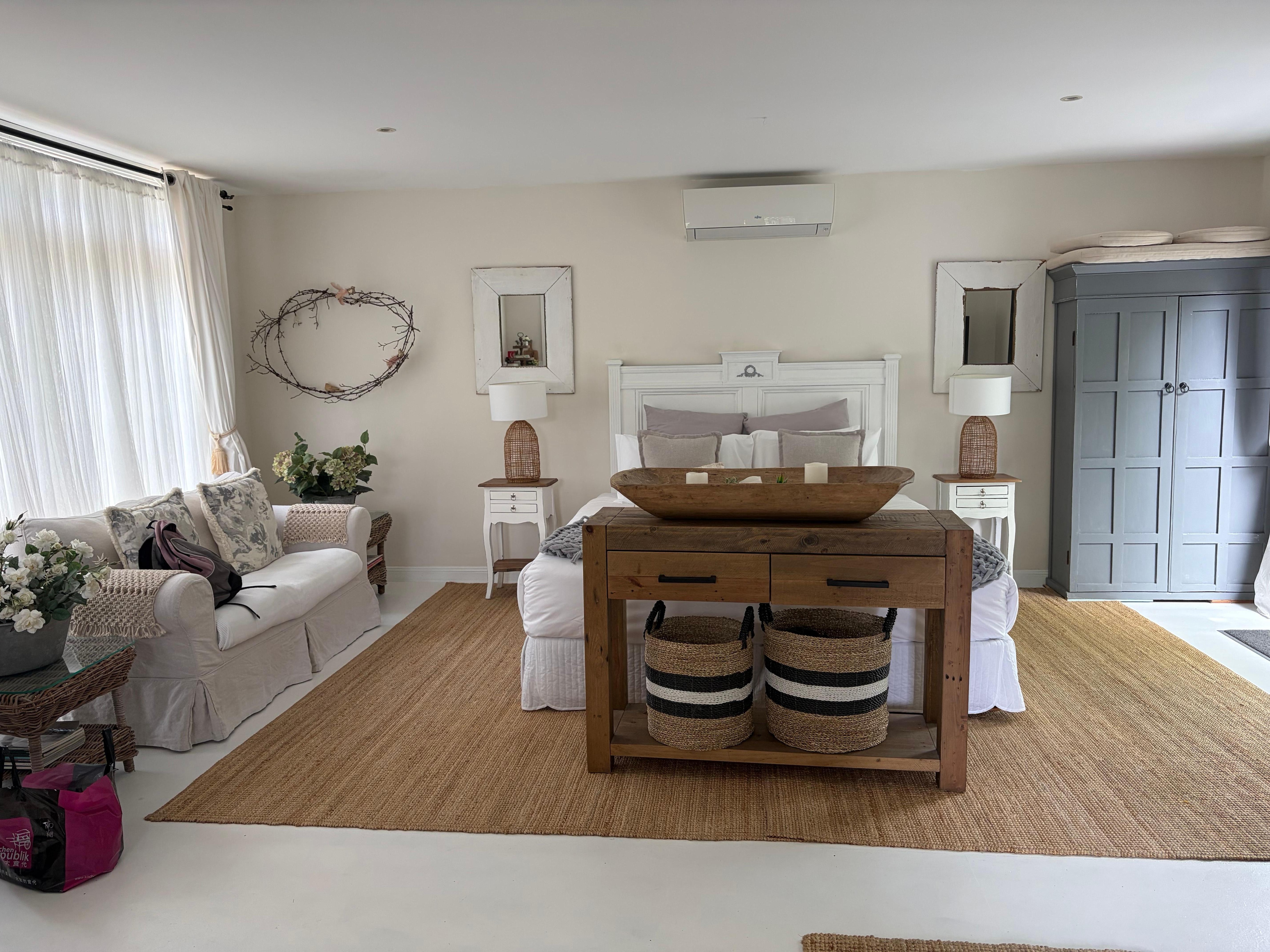 Kings Studio is a warm, cozy and romantic hideaway. It is fitted with a new bathroom and kitchenette. Sunshine streams into the airroom all day long and a warming gas log fire is perfect for those nights when you just want to snuggle in with a glass of wine and a picnic! There is a brand new split cycle system installed to also keep you cool in the hot summer months and warm in winter as well as a cosy gas log fire.