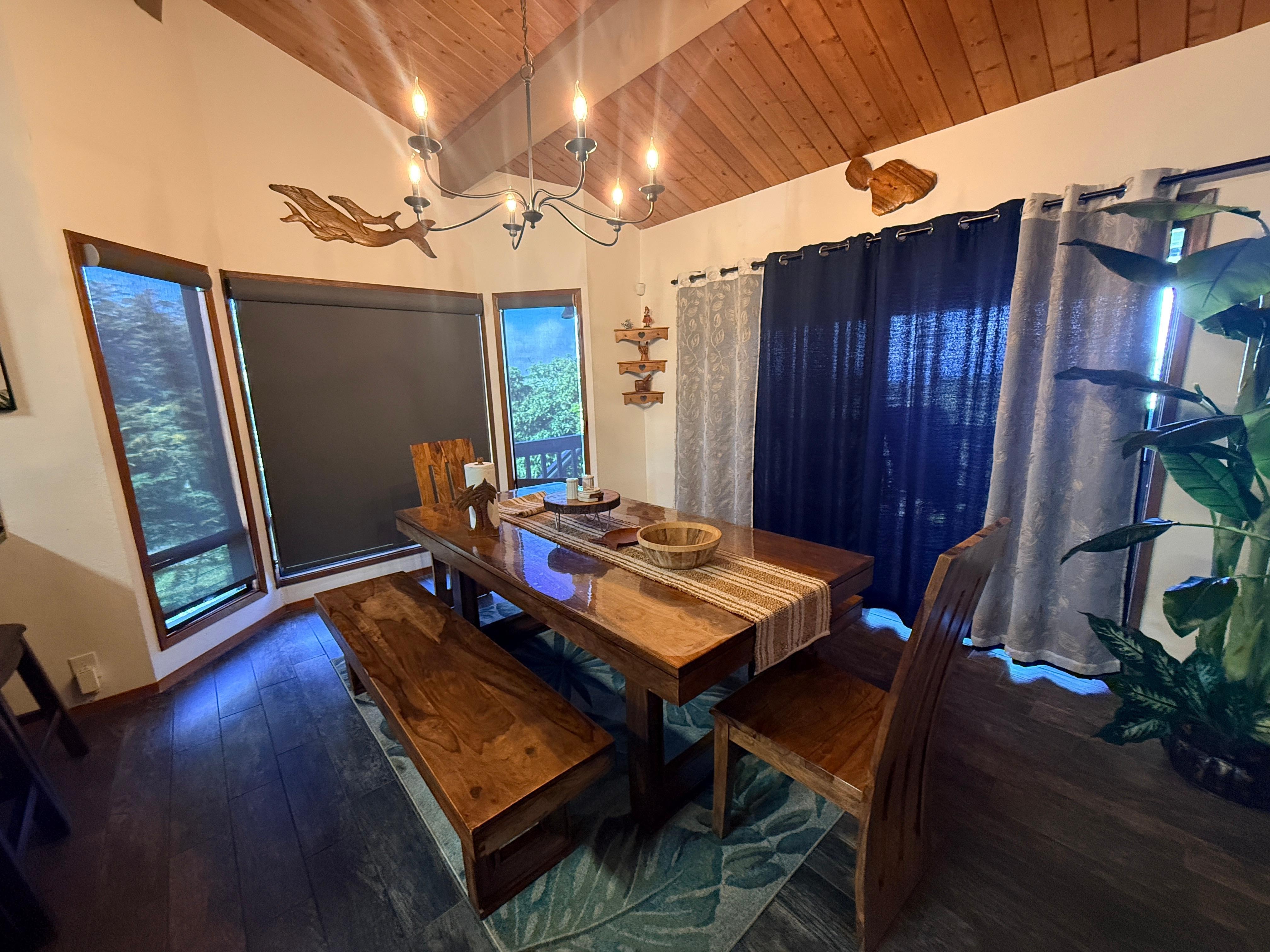 We had a wonderful stay at this beautiful mountain home in Maui! The location is incredibly private, nestled on 2 lush acres, offering a peaceful escape with stunning views, including glimpses of the ocean.The house itself is spacious and well-appointed. The kitchen was fully equipped, making meal preparation a breeze, and the large dining area provided ample space for our group. For those staying on the lower level, the separate den and additional bedrooms were perfect, with easy access via the outside stairs. The beds were incredibly comfortable, ensuring restful nights.We truly appreciated the thoughtful amenities and the tranquil atmosphere, making it the perfect place to unwind. This home had everything we needed and more. I highly recommend it to anyone seeking a relaxing getaway in Maui!The only complaint we had was the cleaners arriving before our checkout time, which made us feel a little rushed towards the end of our stay. Other than that, everything was perfect!