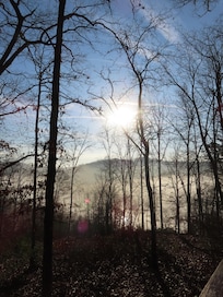 Cozy cabin with gorgeous view from the deck.
