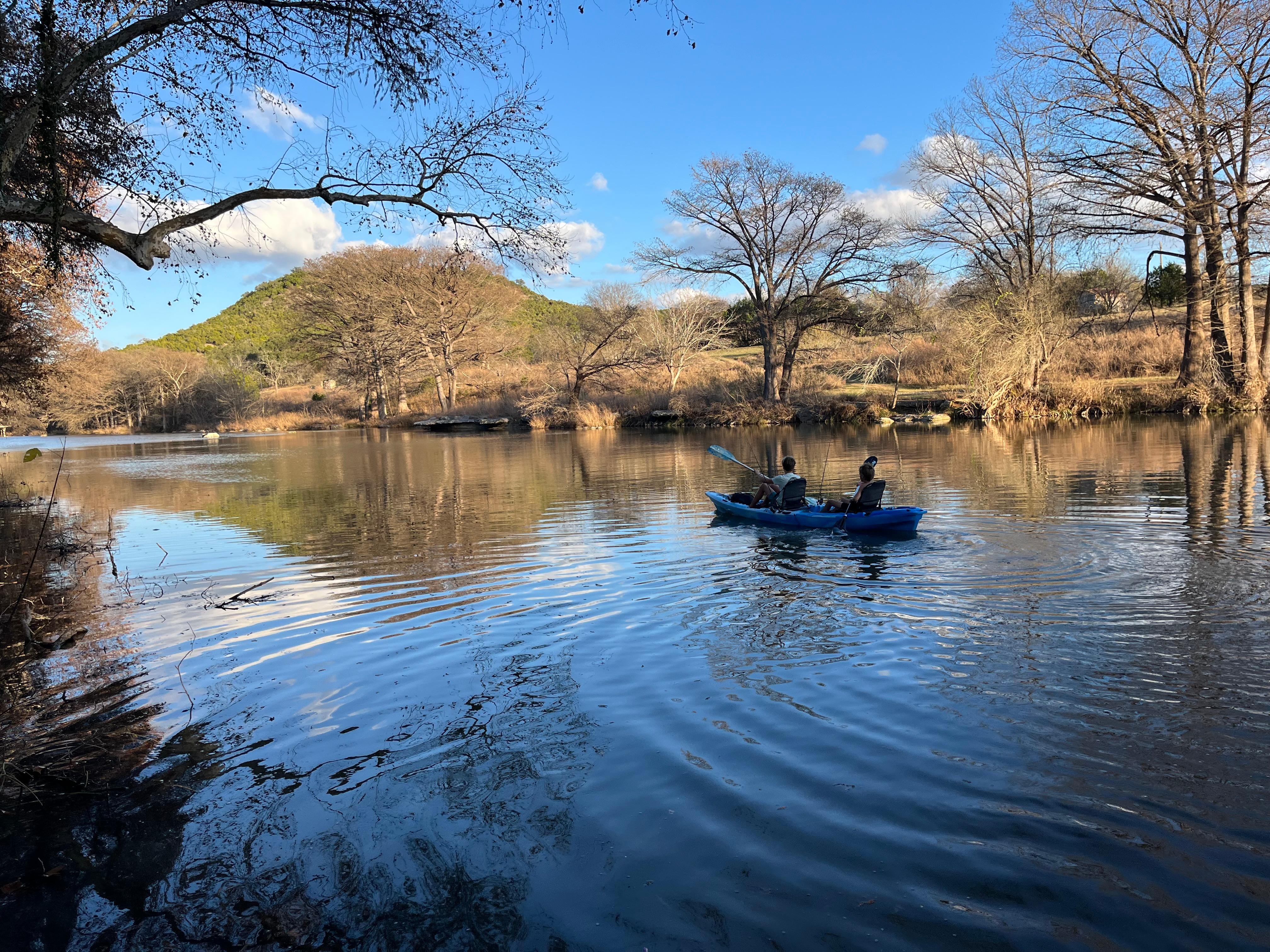 Tubing, Kayaking, and Fishing: Tubing: This is a great section of the river to launch your tubing trip. No need to rent a tube, just drive up river and float down to the house or toob the horseshoe, which is just a couple of miles from the house (see our guide in the house for more information)....Kayaking: The river is usually at a level such that paddling upstream is quite easy, even for the kids. Then you can float back effortlessly toward the house. We provide a two person kayak with paddles and life jackets....Fishing: Fishing is a popular pastime on the Guadalupe, and the waterfall in our backyard is a popular spot for fish and anglers alike. Both the Texas Parks and Wildlife and Guadalupe River Trout Unlimited stock the river with trout between November and February, and the fish thrive in the cool waters of the Guadalupe, which was recently voted one of the top 100 trout streams in the US.