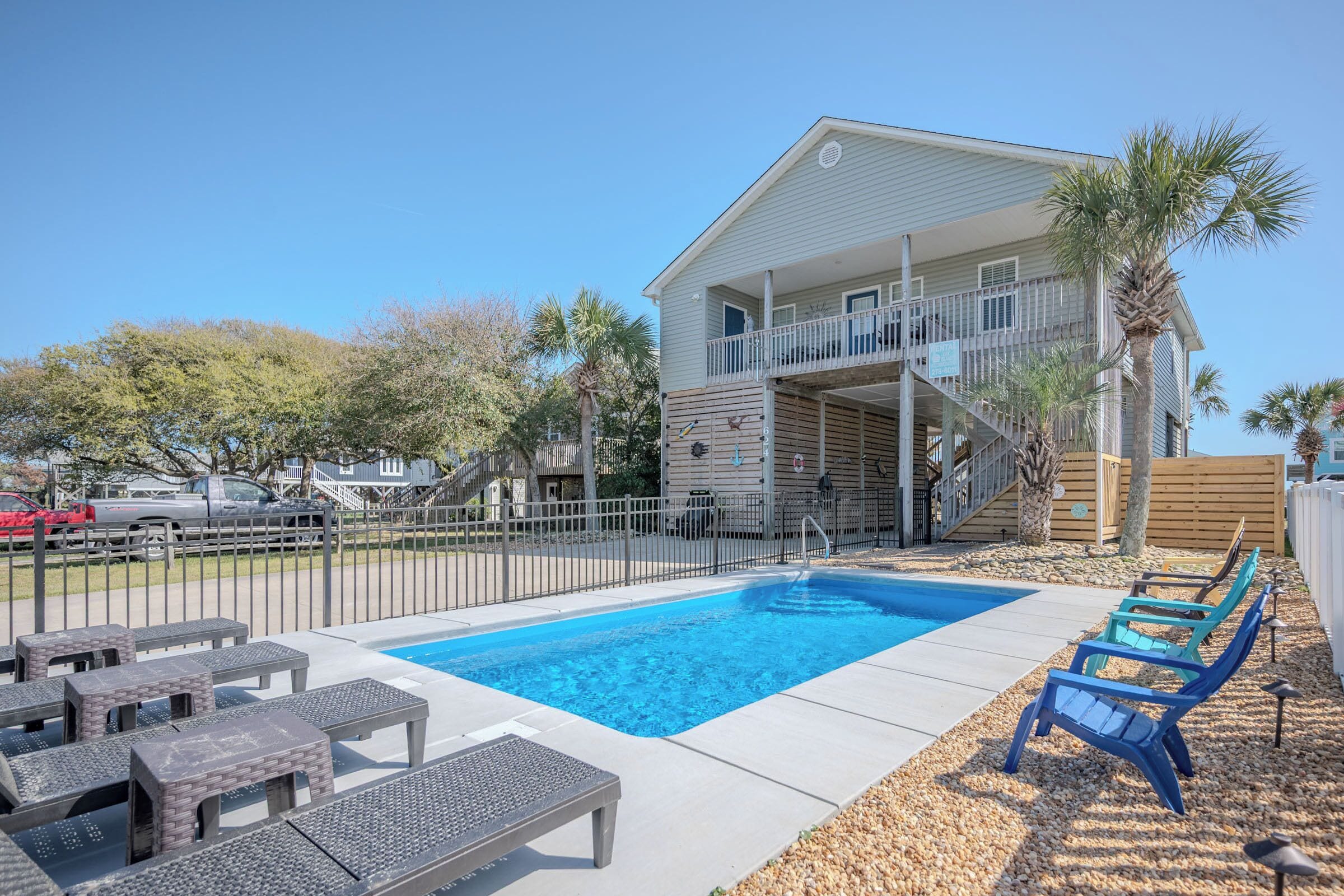 Step outside to your private pool, perfect for cooling off after a day at the beach or soaking up the Carolina sunshine. Rinse off in the outdoor shower before heading inside to unwind for the evening.