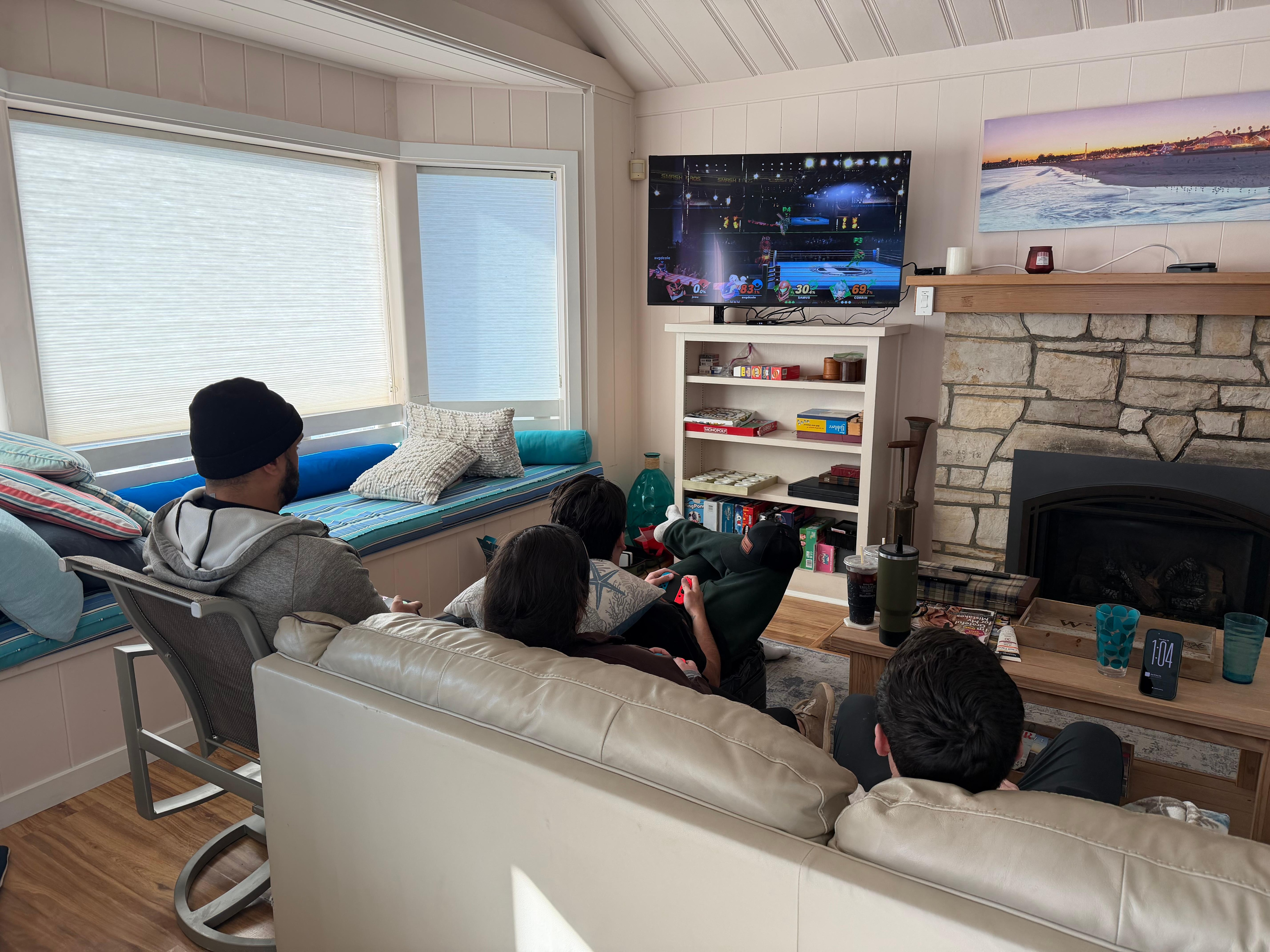 Inside, unwind in the cozy bay window with a good book, gather around the fireplace for games, or simply watch dolphins, surfers, and even the occasional whale pass by.