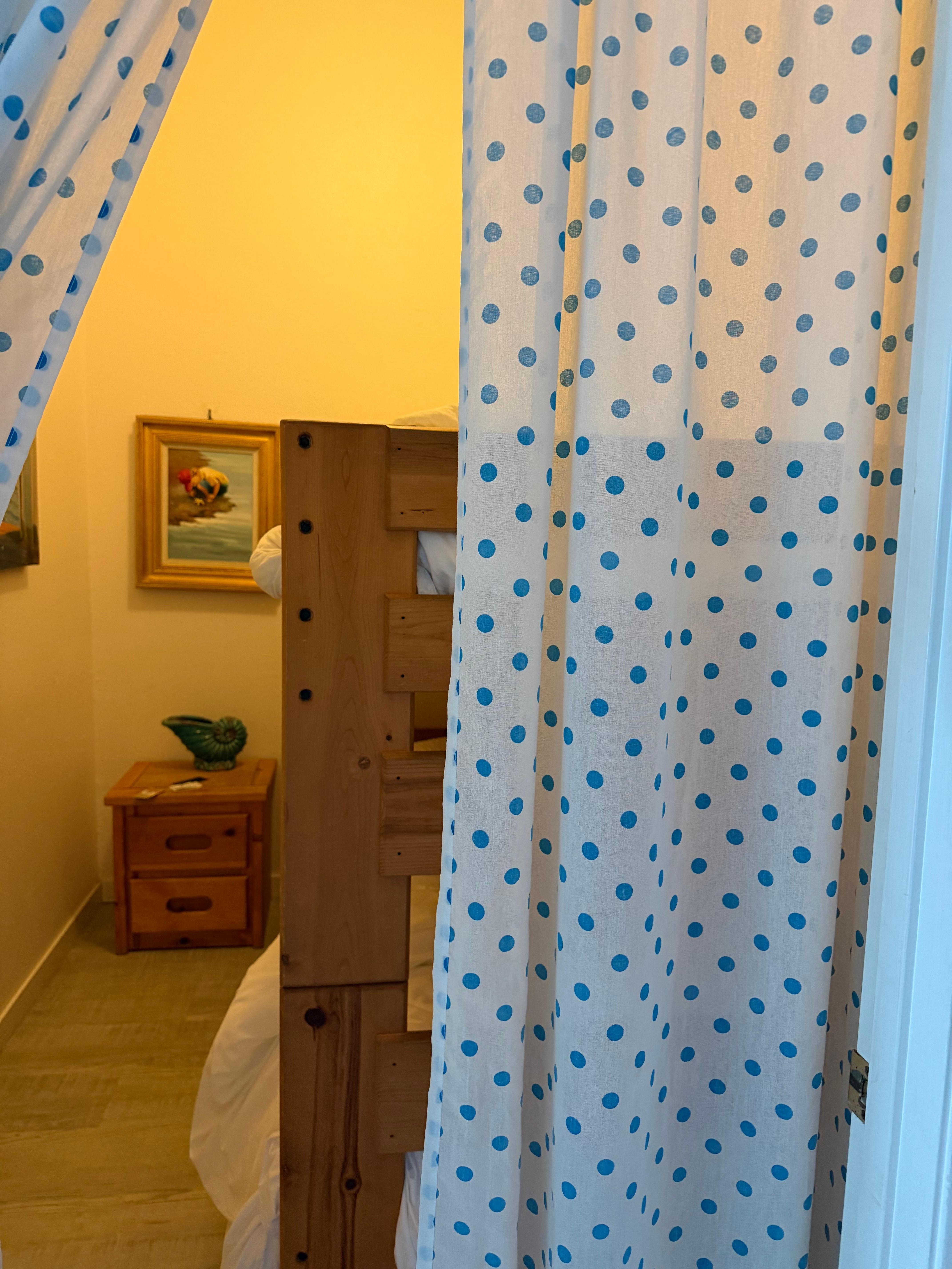 - The 2nd level has SEPARATE ENTRY, kitchenette, 1 large oceanfront bedroom w/ King bed & patio, 1 small room w/ set of bunks (curtain as a door), 1 full bed (w/ curtain for privacy) & ocean view deck, 1 full bathroom w/ shower/tub