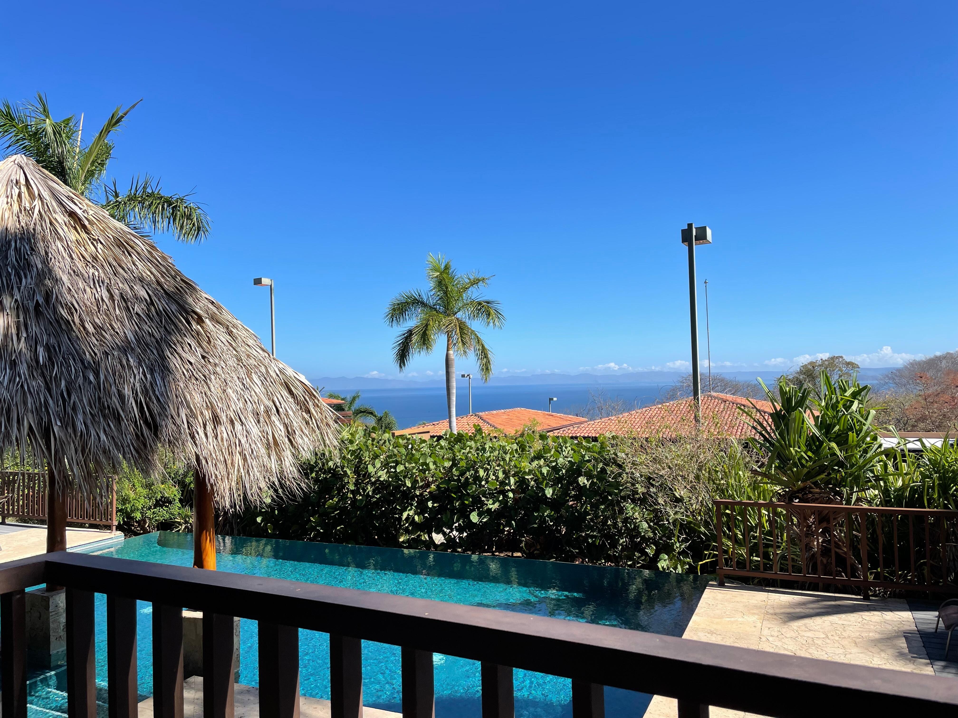 Wake up to Pacific Ocean views from your private veranda at this spacious 2-bedroom escape. Your group gets exclusive access to a pool shared with just 5 other units, a fully equipped kitchen with breakfast bar, and an outdoor BBQ setup perfect for sunset dinners. Located 10-minute drive from Playas del Coco's restaurants and beaches. Note: The property sits on a hillside: 4x4 recommended for easiest access. Embark on your dream getaway today!