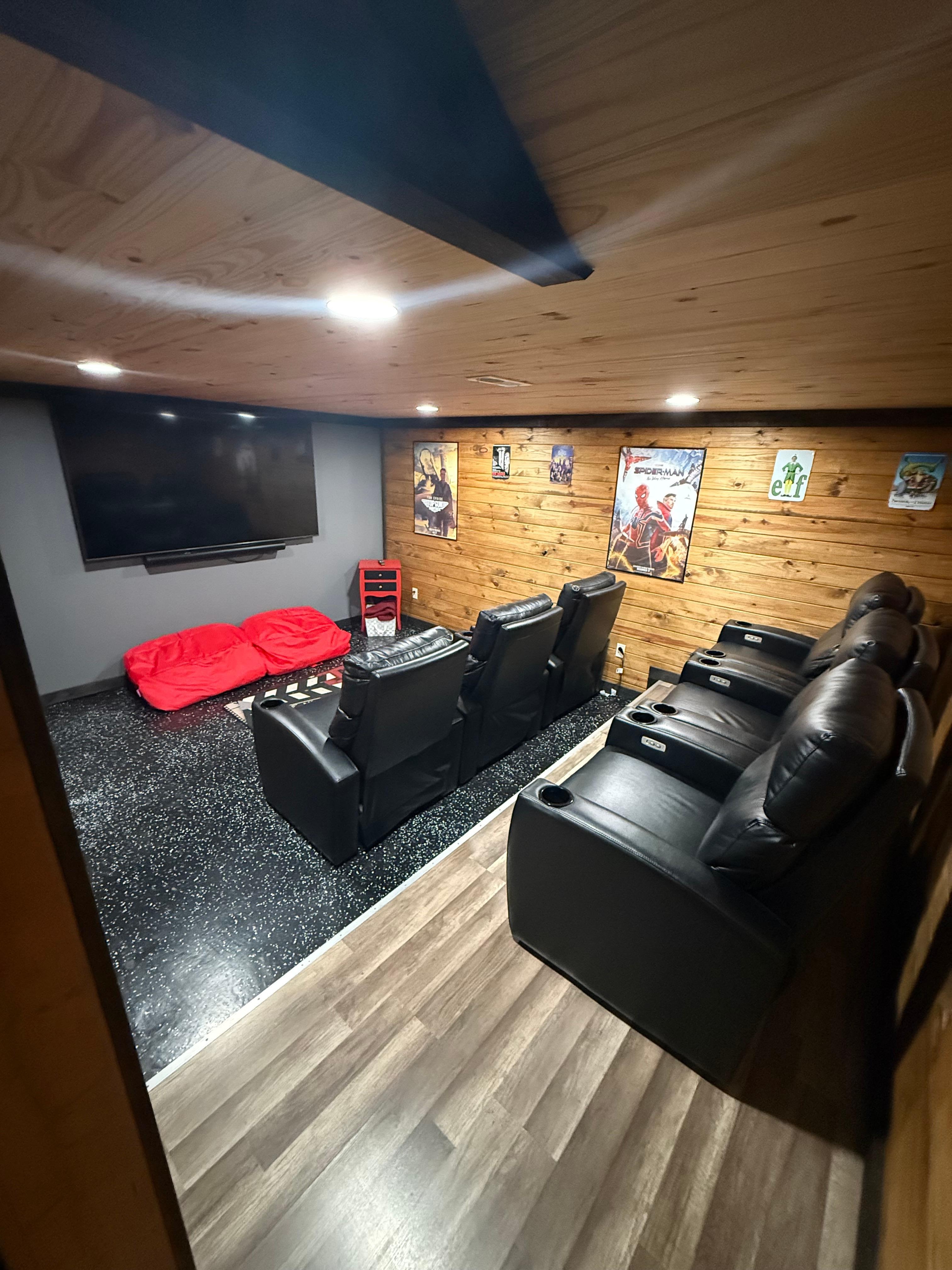Downstairs, you will find a theater with 85 inch smart TV and Sonos sound bar and subwoofer. The theater has 6 plush, electric leather seats along with 2 large bean bag chairs. Of course, there’s room for more seating so feel free to move chairs from the game room just around the corner or grab a few blankets to enjoy the movie or big game with your family. Enjoy Pac Man, NFL Blitz or play some pool while watching another large smart TV hung in the game room.