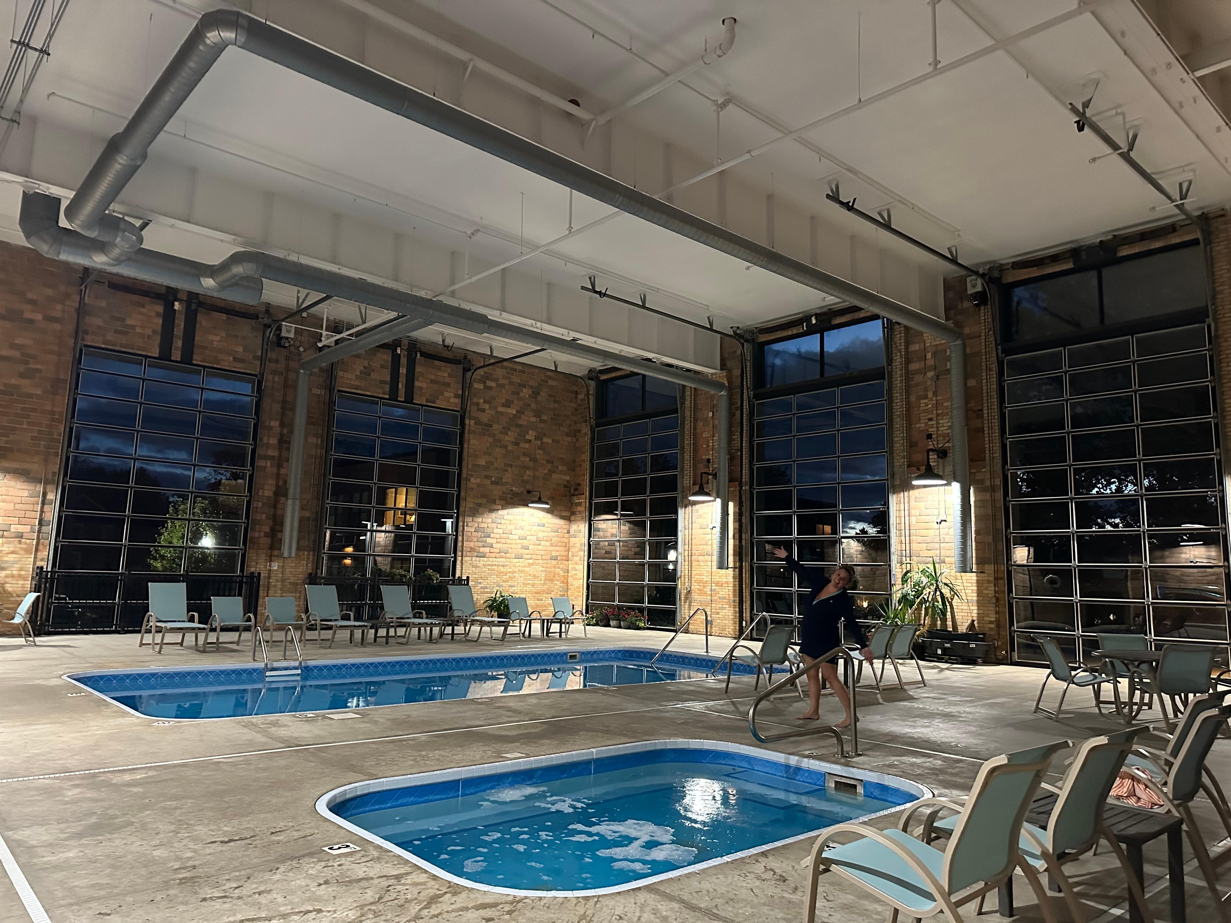 Situated on the 2nd floor, accessible by just one flight of stairs (due to the building's vintage nature, this is not handicapped accessible), the loft welcomes you with exposed brick and a lively atmosphere. There is an elevator to the condo itself, but not one to the pool/hot tub/theatre area. The bedroom exudes warmth and style, with cozy furniture and inviting bedding on a king-sized bed and twin trundle bed in master. The king bed is fairly high off the ground and may not be suitable for older guests. Your guests will find comfort in the choice between 2 pull-out sofas, designed for a restful night's sleep.