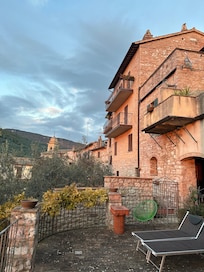 The apartment was everything we expected, lots of character with beautiful views. Unfortunately because of the time of year we were there, we didn’t take advantage of the patio due to the temps being low. Our host Manuela went above and beyond looking after us. My wife unfortunately got sick during our stay there and Manuela dropped off homemade soup, that was delicious. Not the only thoughtful thing she did for us. We loved Spello and all it had to offer and the apartment was a treat to come back to every day.
