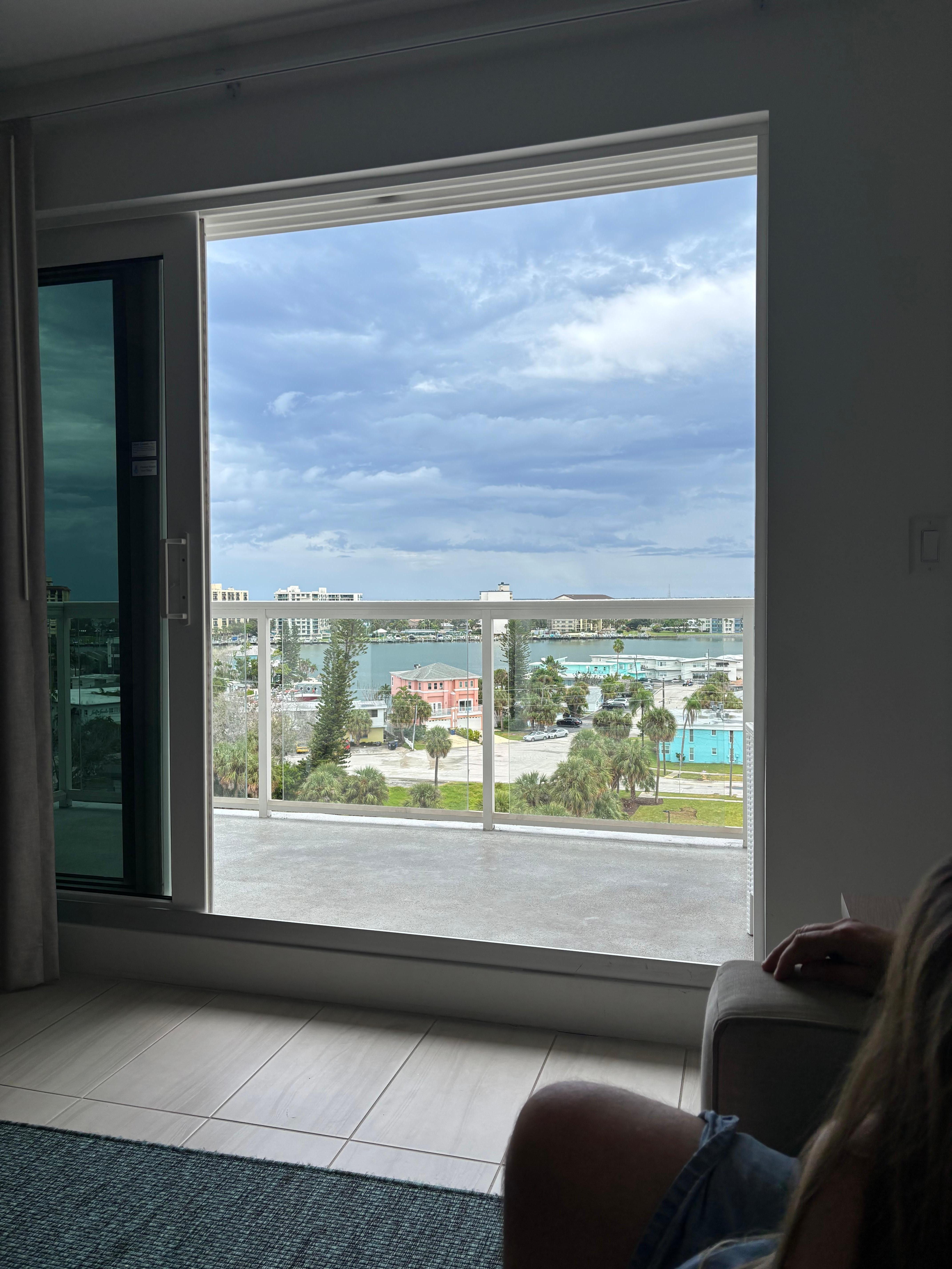The master bedroom is a large and lovely room with a King-Sized Bed, a TV, and has a small safe in the closet. The Master bath has a walk-in shower. The quest bedroom has a queen size bed, with a TV. The Guest bath has a shower/tub combination. The living room has a large-screened TV, and the kitchen has a breakfast bar that seats 3, and there is a balcony that overlooks Mandalay Street. The living room sofa has a pull-out sofa bed. There is a detached balcony with magnificent views of Clearwater beach. Enjoy an evening beverage while watching a beautiful sunset!