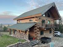 1 hot tub and fireplaces help set the scene for a sizzling getaway at Adams Rest - NEW HOT TUB! Mosier Log Cabin, Mt Adams View, Great Peaceful location!.