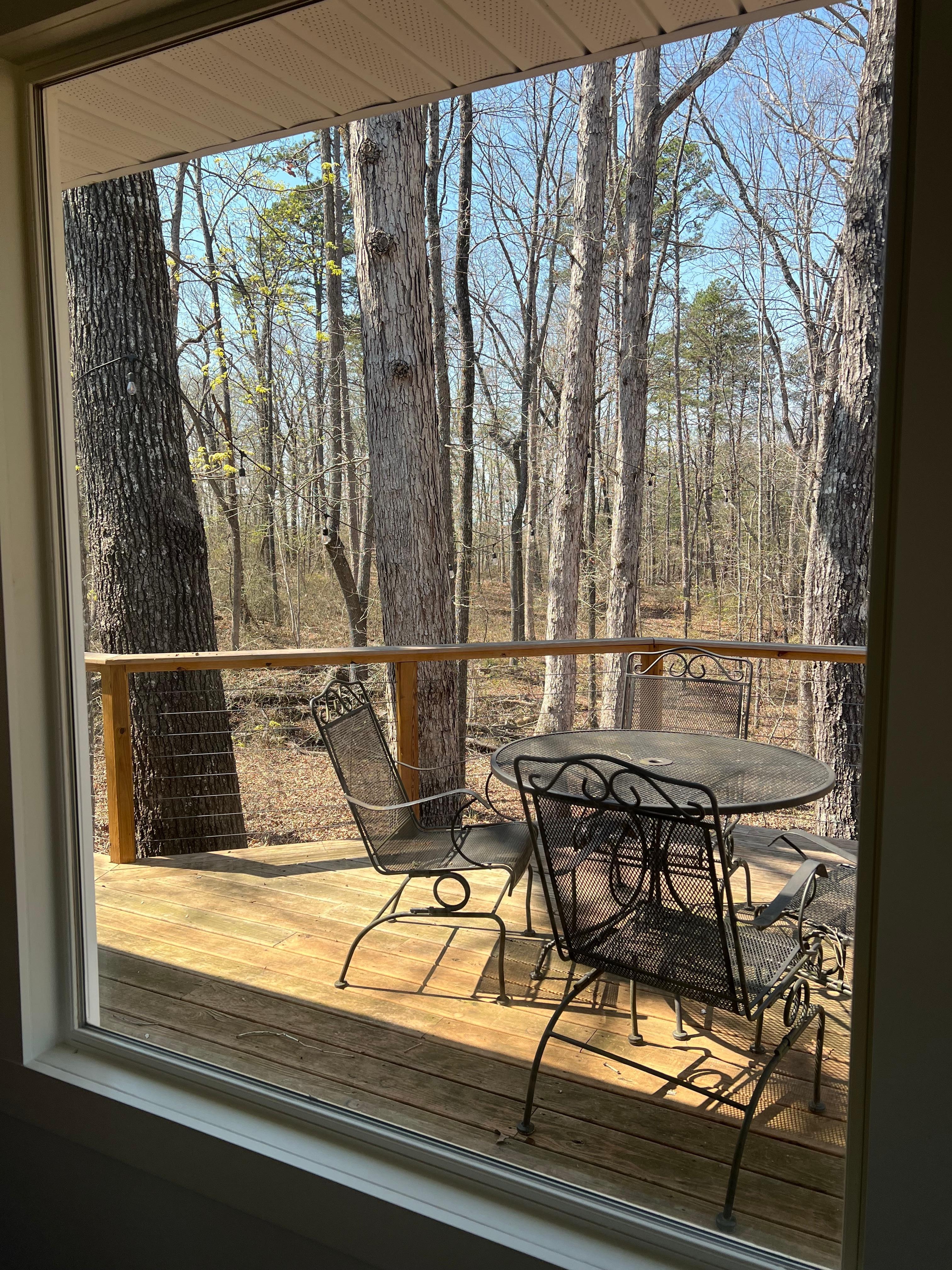 This is a great spot to relax and get close to nature- it’s surrounded by trees and so quiet. Great deck and outdoor furniture; and very comfortable inside; great bed, roomy kitchen and bathroom, and a fireplace in the living room. We will definitely consider renting this again.