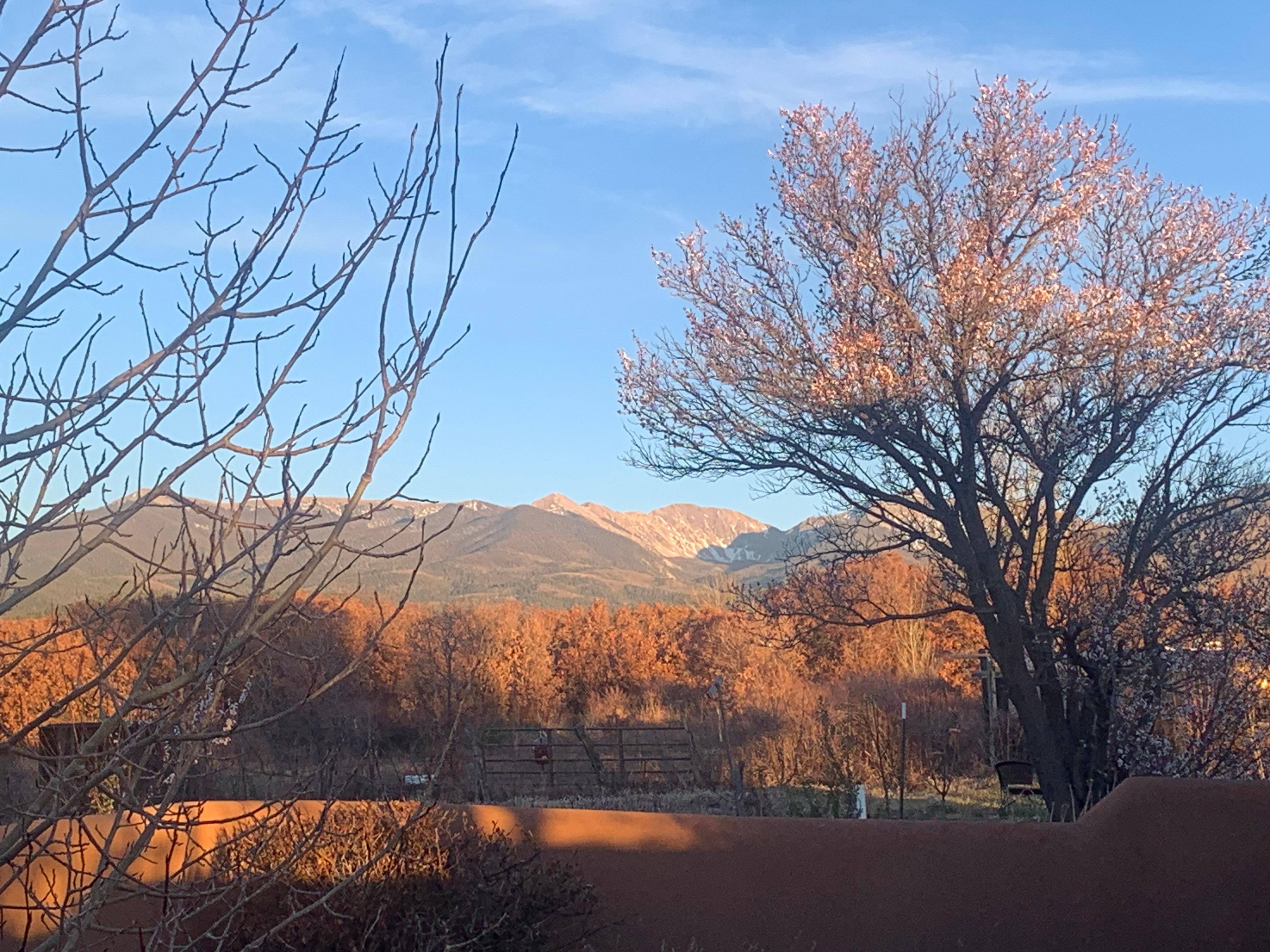 A fully remodeled 1100 square foot adobe home, with one large bedroom and a fully equipped kitchen, living room, bathroom with a walk in shower. Situated on the High Road to Taos in historic Truchas New Mexico. The large windows in the bedroom fully frame the view of the Truchas Peaks, which at 13,100 feet dominate the surrounding countryside. There is also an additional 400 foot covered portal for a relaxation during your breakfast dining or happy hour.