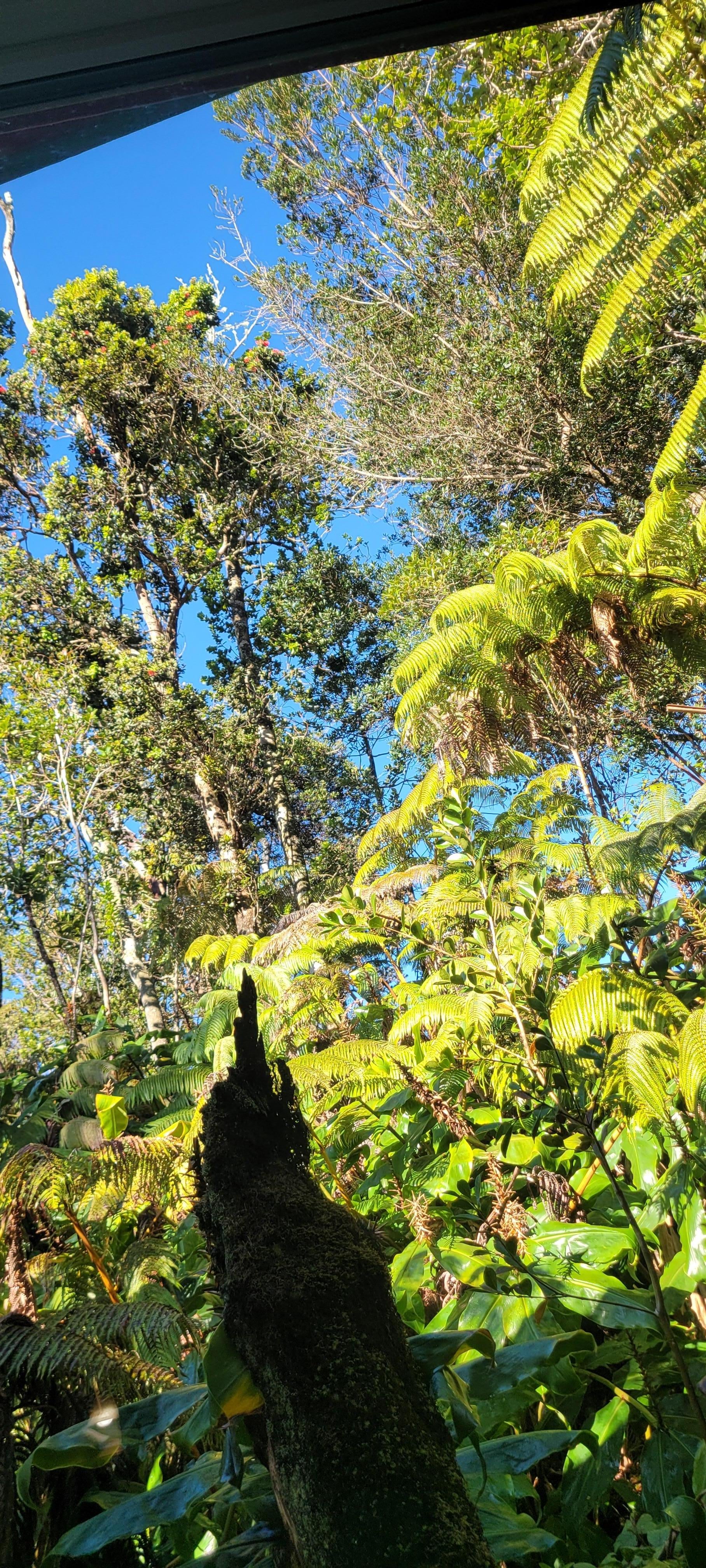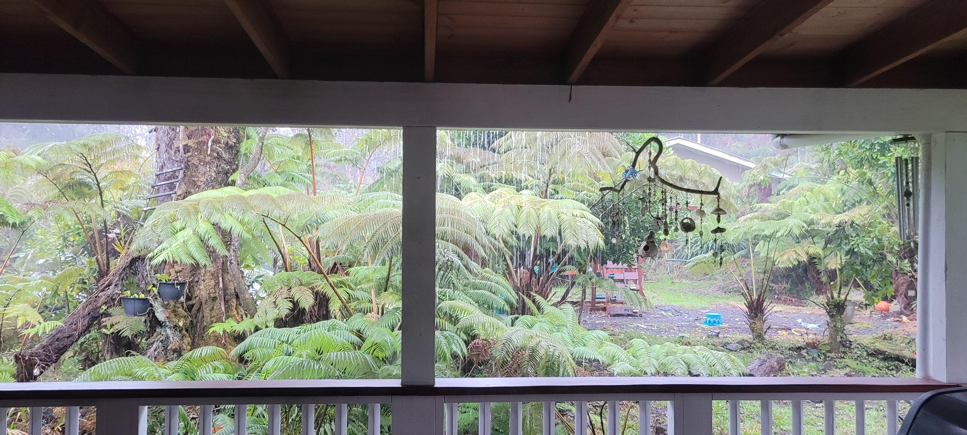 On the large, covered deck that extends the full length of the house, guests can enjoy a game of ping pong and a BBQ on the gas grill after an adventurous day at the Volcanoes National Park. Enjoy amazing views of the 1/2 acre lush landscaping that surrounds the property while resting in one of our hand-made hammocks. In addition to native tropical flowers, Kahili ginger, wild orchids, ʻōhiʻa lehua, and hapu'u ferns you will find seasonal delights on our fruit trees and small walking paths throughout the expanse of the property.