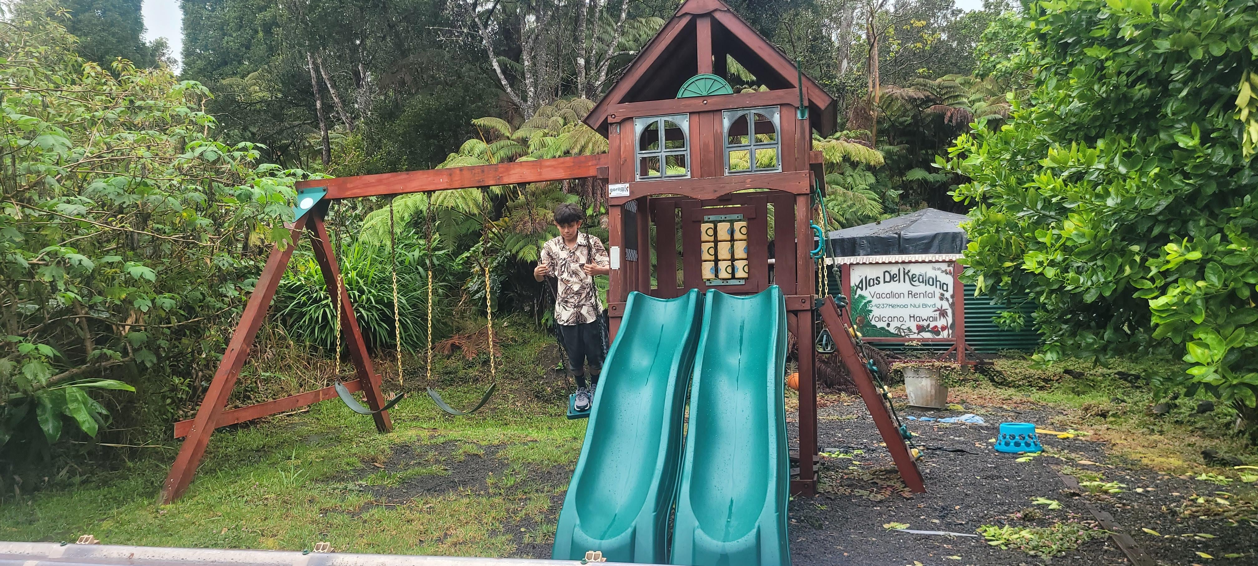 This 3 bedroom, 2 bathroom home is perfect for large families with children all ages, friends traveling together, a special anniversary, or as a writer/artist's retreat. Equipped with a full deluxe kitchen, free highspeed WIFI, laptop-friendly surfaces and large flatscreen television with premium cable service. For small children, we offer a brand new Graco Pack n' Play, On The Go Travel Play Yard for entertainment and a high chair (upon request). For older children and adults, there is a large selection of games such as Monopoly, Scrabble, Pictionary, cards and more! Binder with electronic instructions, umbrellas and umbrella holder are also at hand and ready to be used. We also provide lots of paper and fire starter pellets for the wood burning stove, as well as a starter bundle of dry split firewood. Come and enjoy this beautiful gem in the heart of the Hawaiian rainforest!