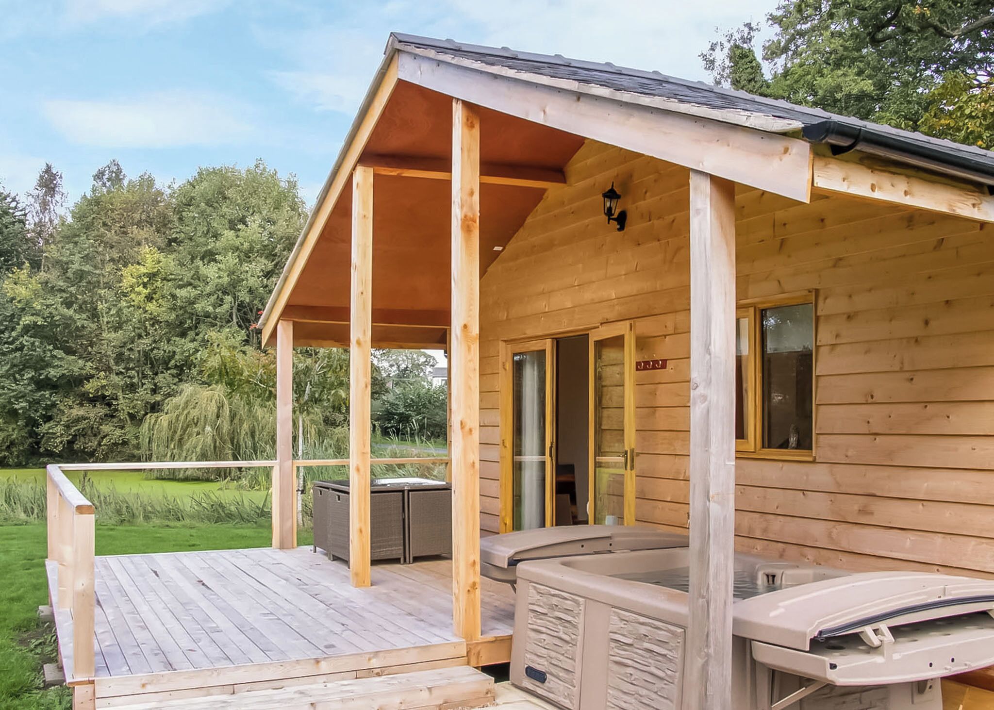 1 hot tub and private patios help set the scene for a sizzling getaway at Stunning Barn Conversion.