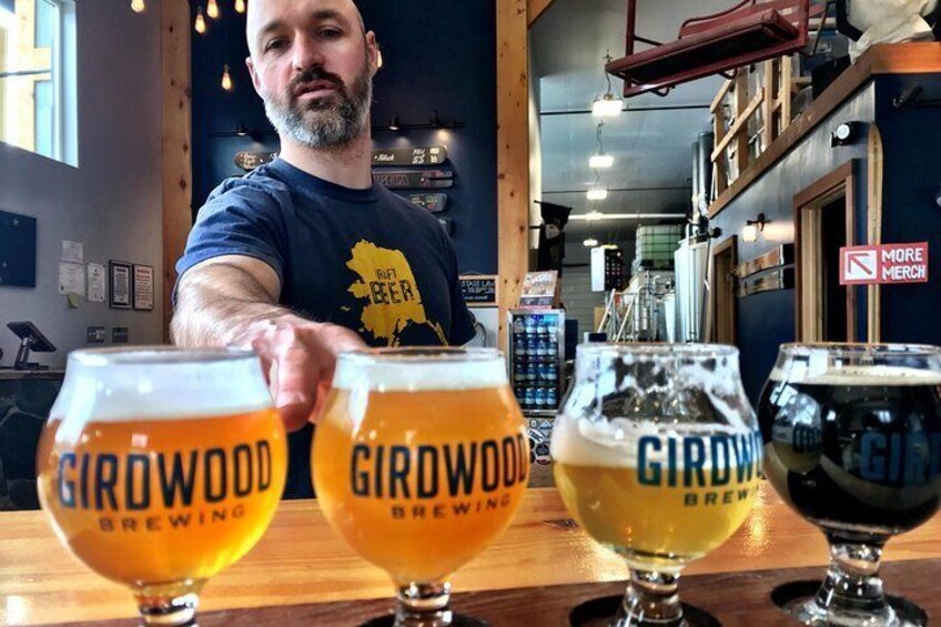 We will board the Alyeska Aerial Tram for a birds-eye view of the Girdwood Valleyand surrounding Chugach Mountains before topping out at our lunch perch atop Mt. Alyeska. From 2,300ft. above the valley floor we will enjoy lunch at the Bore Tide Bar and Deli while soaking up the breath-taking panoramic views. Once fuelled up on our lunches, we will make our way to Girdwood Brewing Company. Founded in 2017, we will cosy up in this beautiful brewery while we taste the hand crafted beers and receive a behind the scenes tour the brewery. Mingle with the locals and learn the art of brewing craft beer in the Last Frontier.