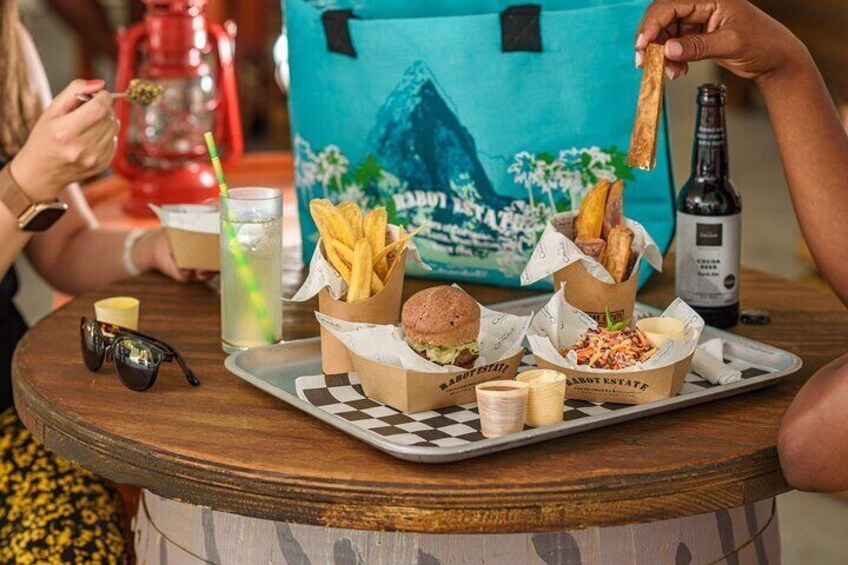 Market Lunch: Experience cacao cuisine, served street-food style. Including the Cacao Burger, Cacao Fish & Chips and fresh local produce.